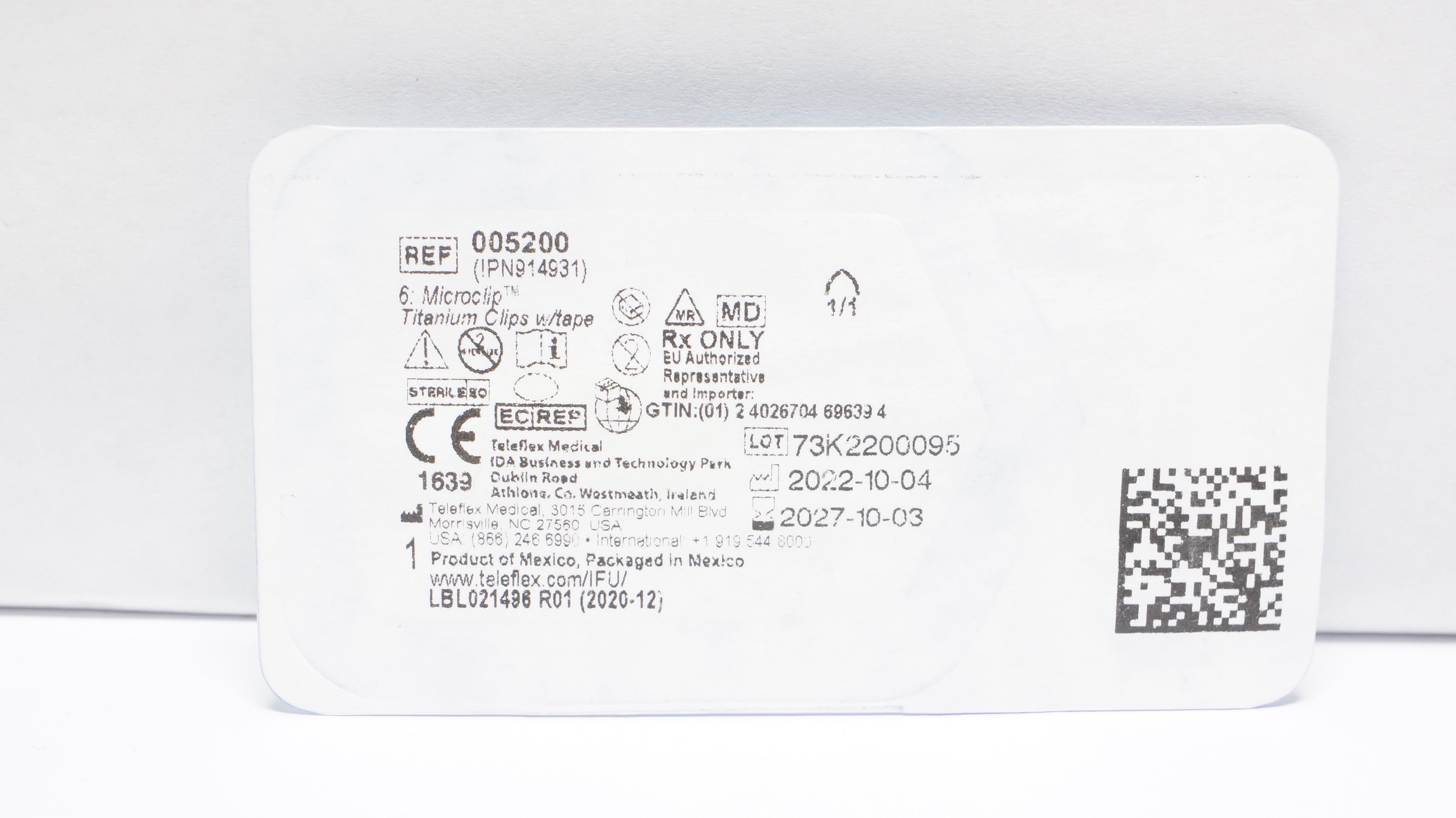 Teleflex 005200 6Microclip Titanium Clips with Adhesive Backing