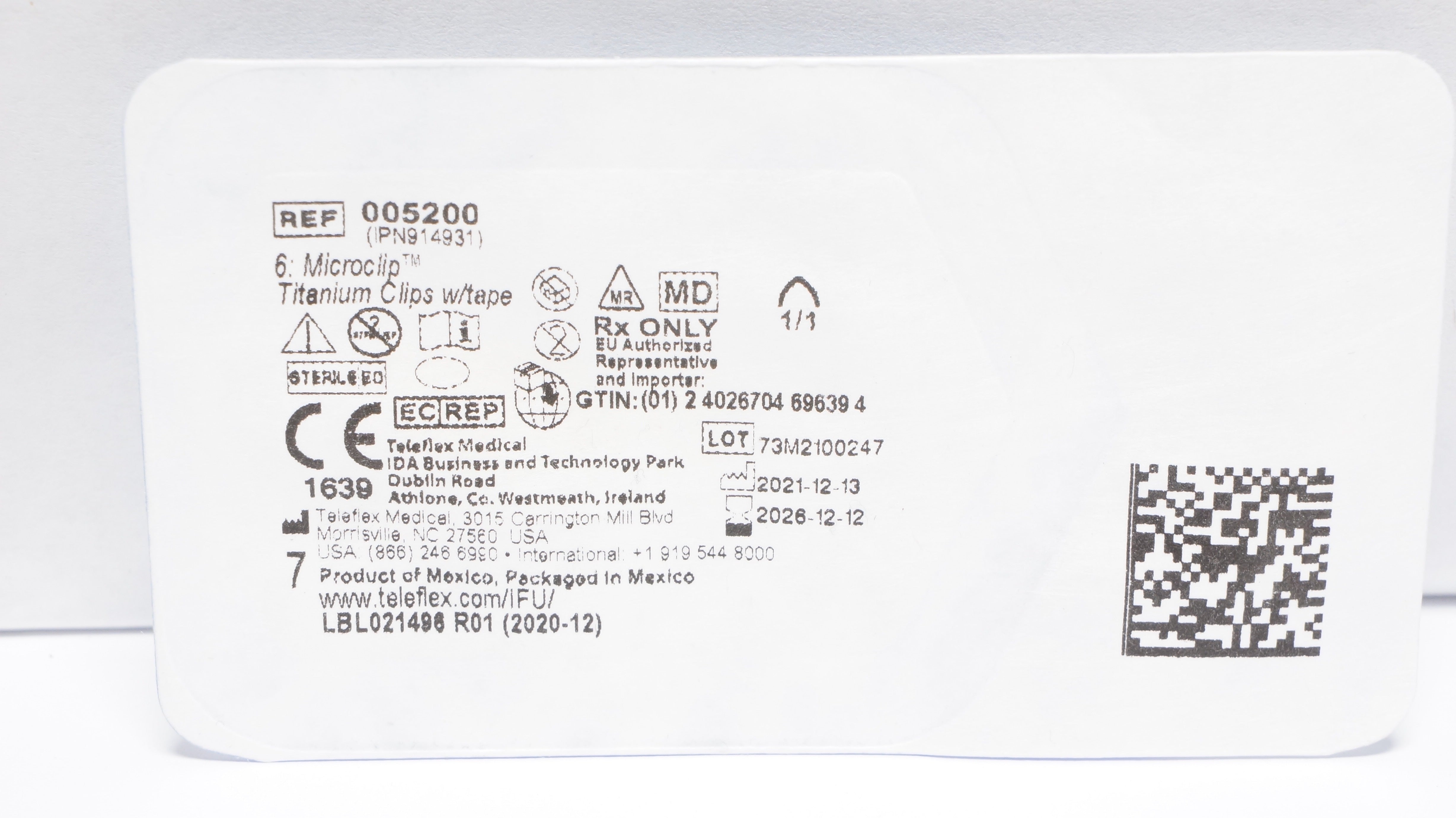 Teleflex 005200 6Microclip Titanium Clips with Adhesive Backing