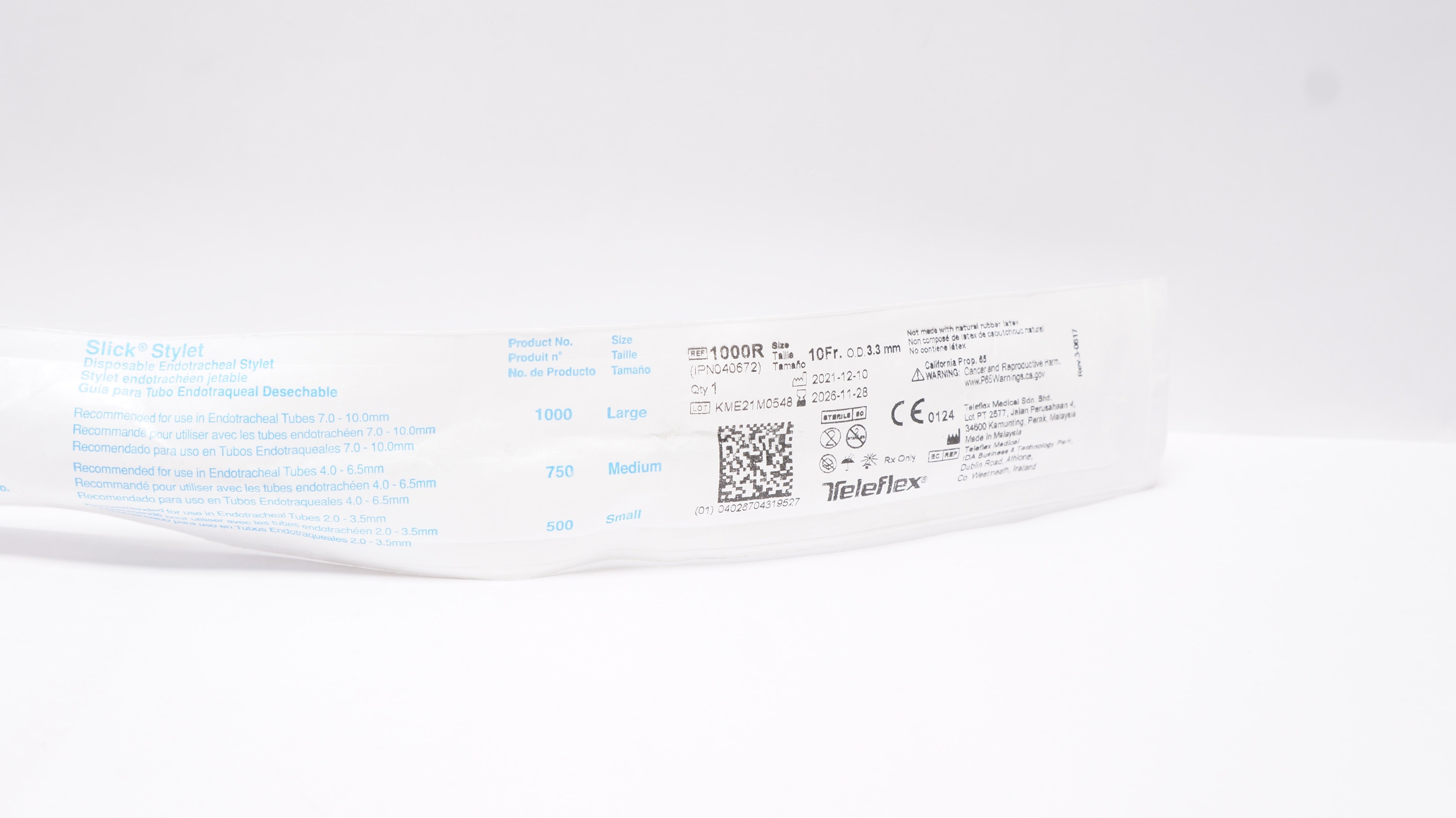 Teleflex 1000R Slick Stylet Disposable Endotracheal Stylet 10Fr x 3.3mm O.D.