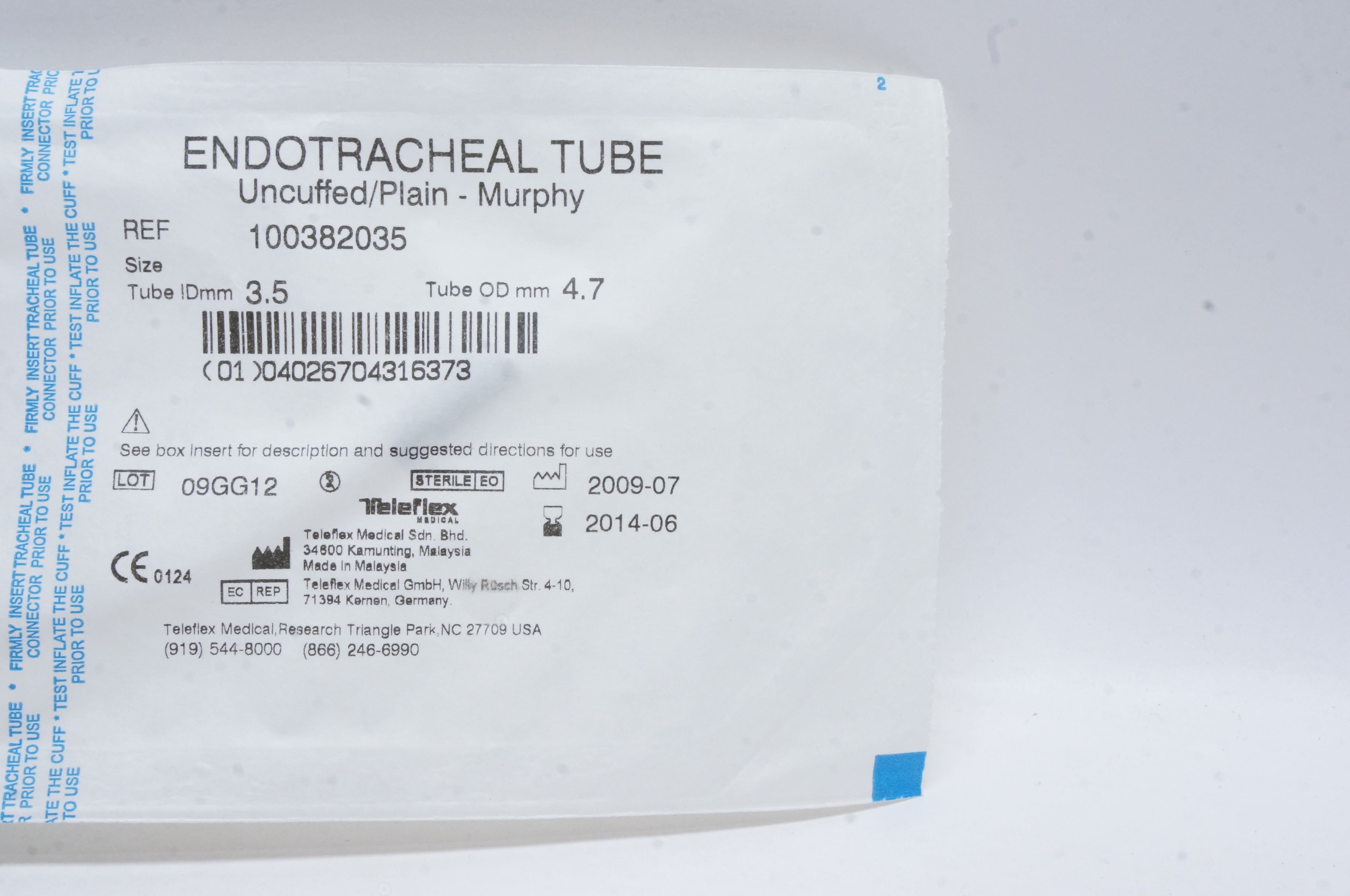 Teleflex 100382035 Endotracheal Tube Uncuffed/Plain - Murphy 3.5mm x 4.7mm