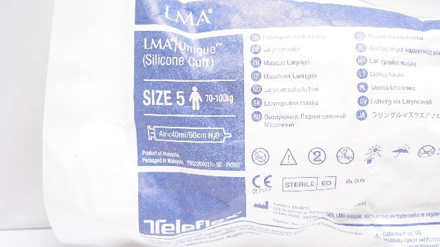 Teleflex 105300-000050 Laryngeal Mask Airway, Size 5, 70-100kg Air<40ml/60cm H2O