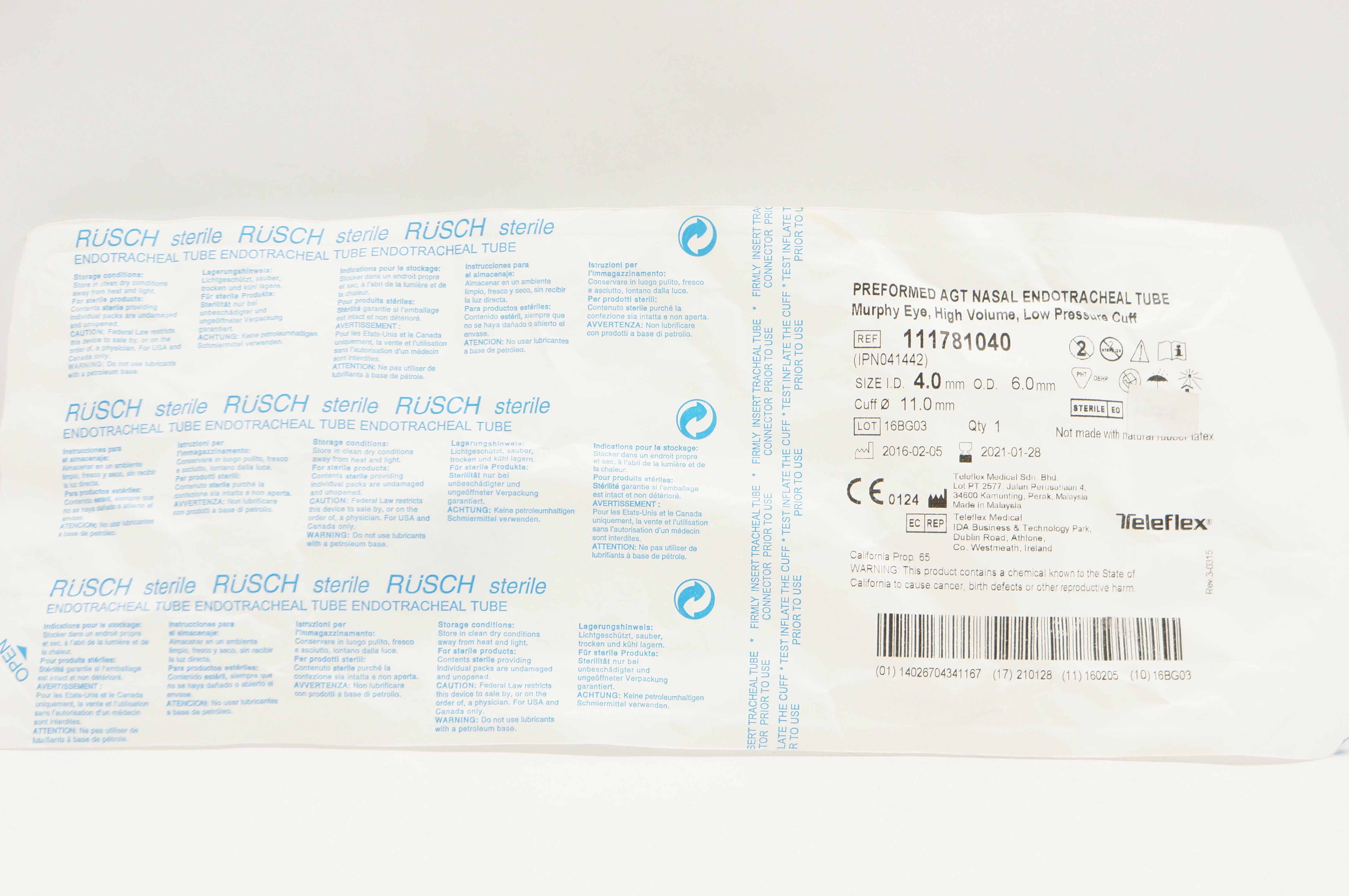 - Teleflex 111781040 Preformed Agt Nasal Endotracheal Tube 4 x 6 x 11mm (x)