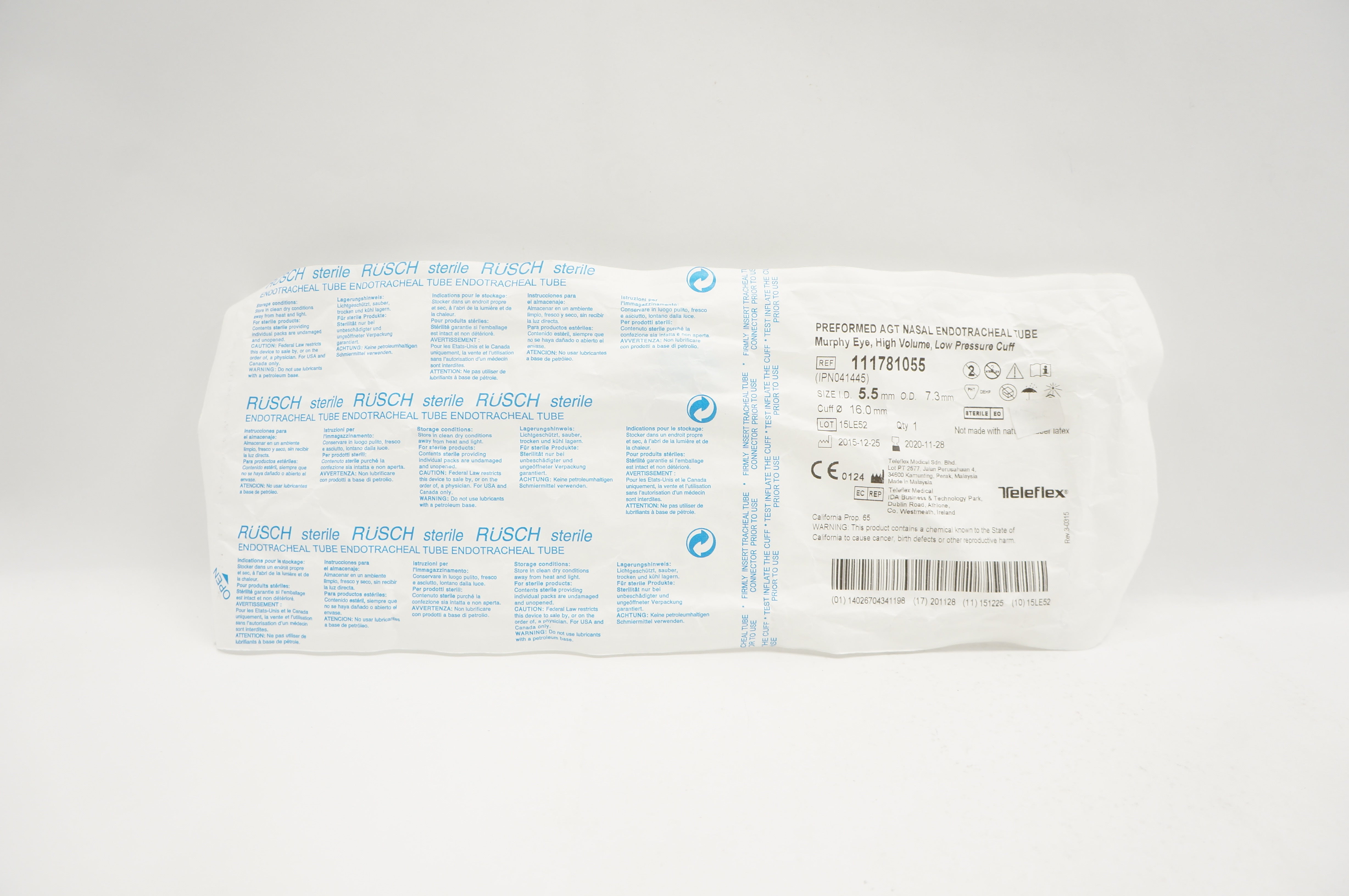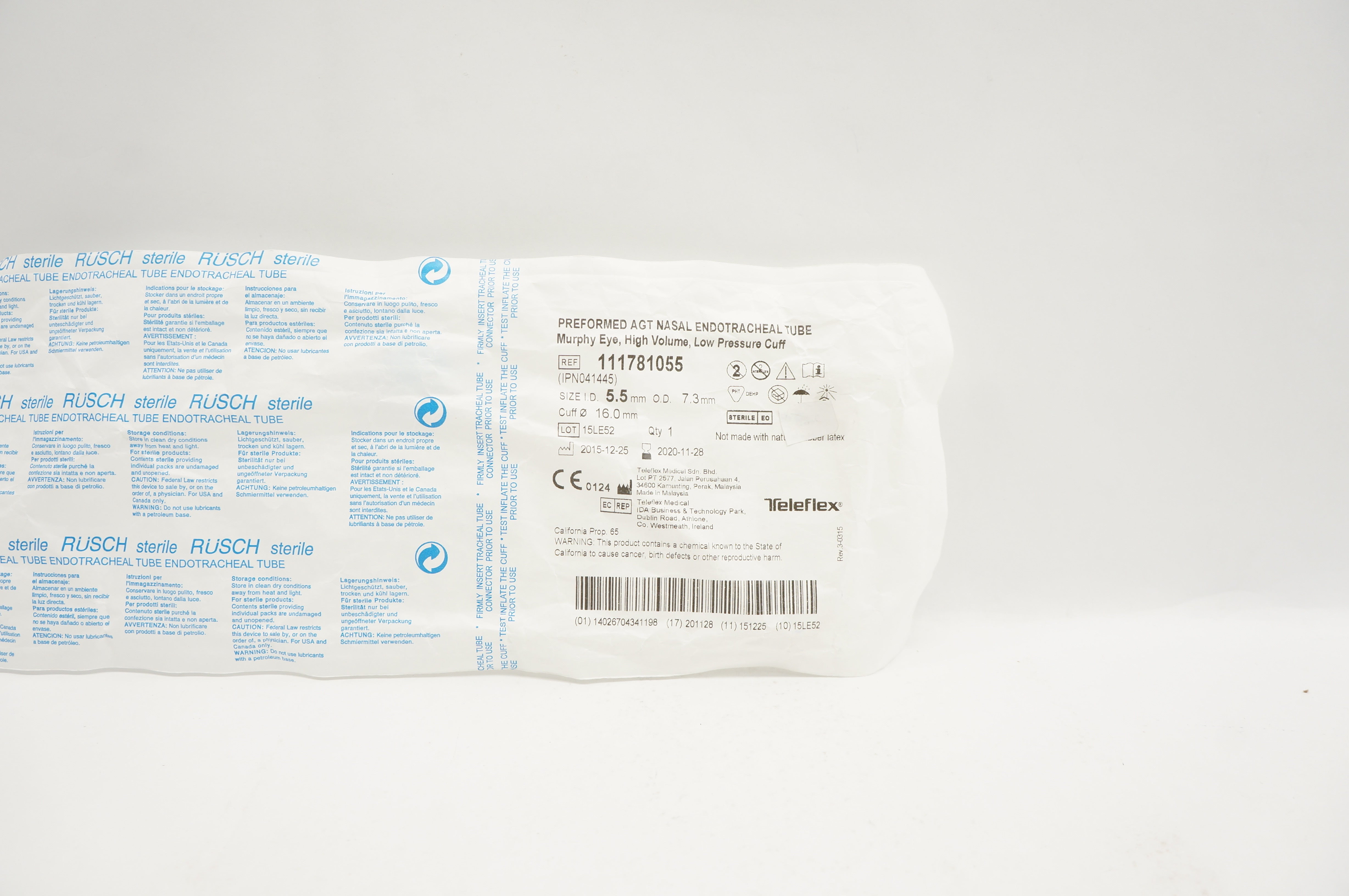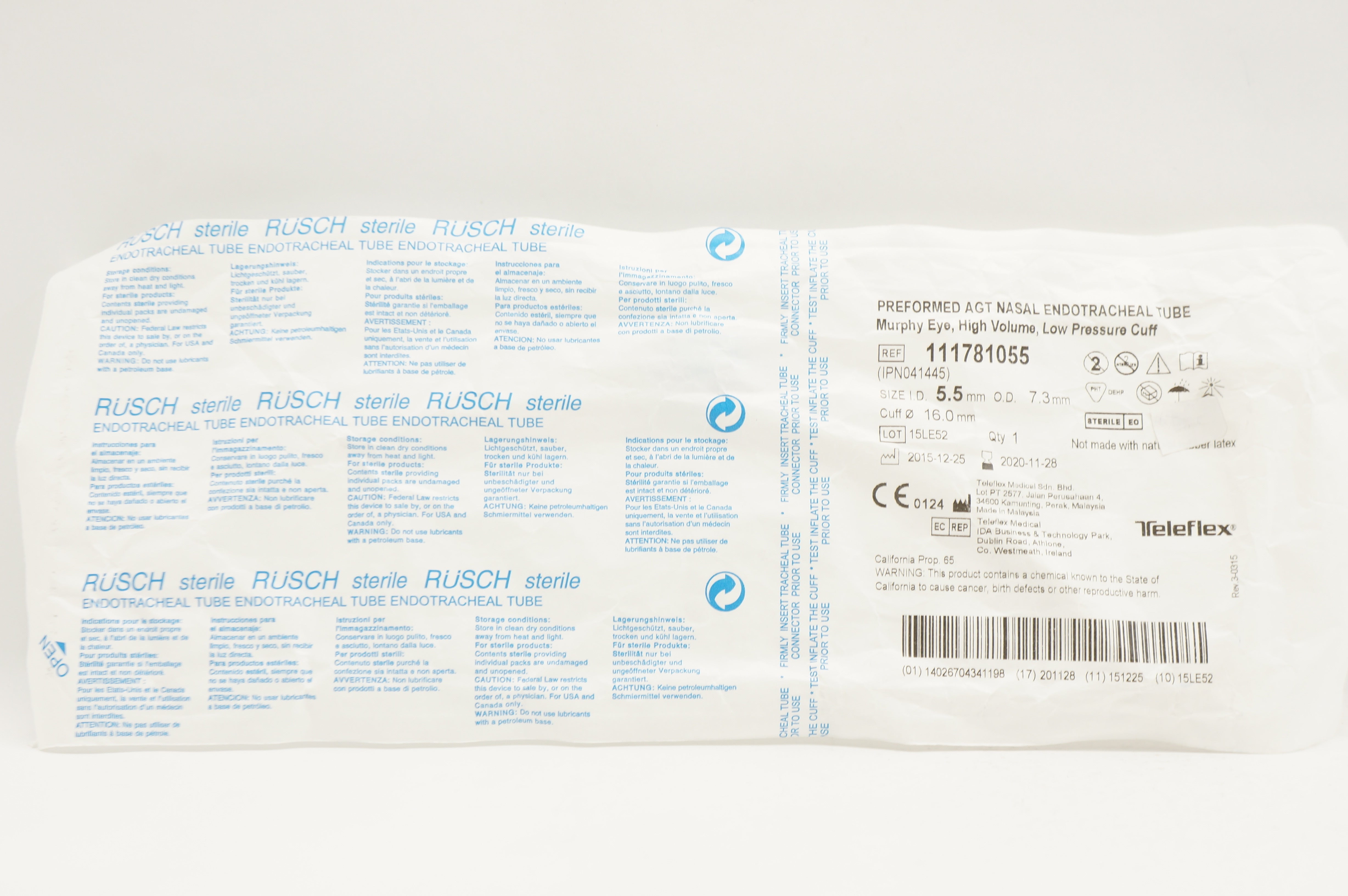 - Teleflex 111781055 Preformed AGT Nasal Endotracheal Tube 5.5 (x)