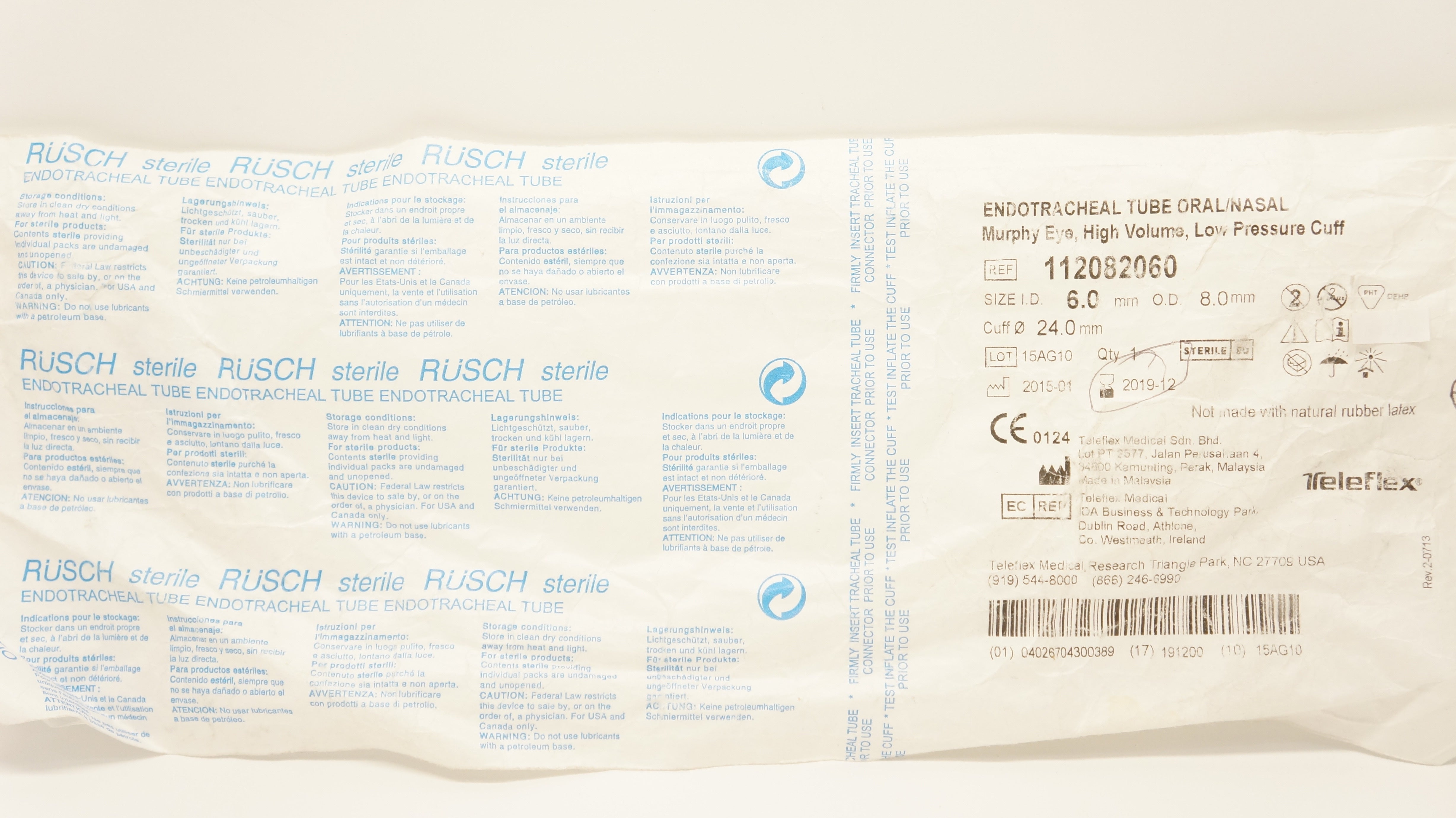 - Teleflex 112082060 Rusch Endotracheal Tube 6.0mm ID x 8.0mm OD x 24.0mm (x)