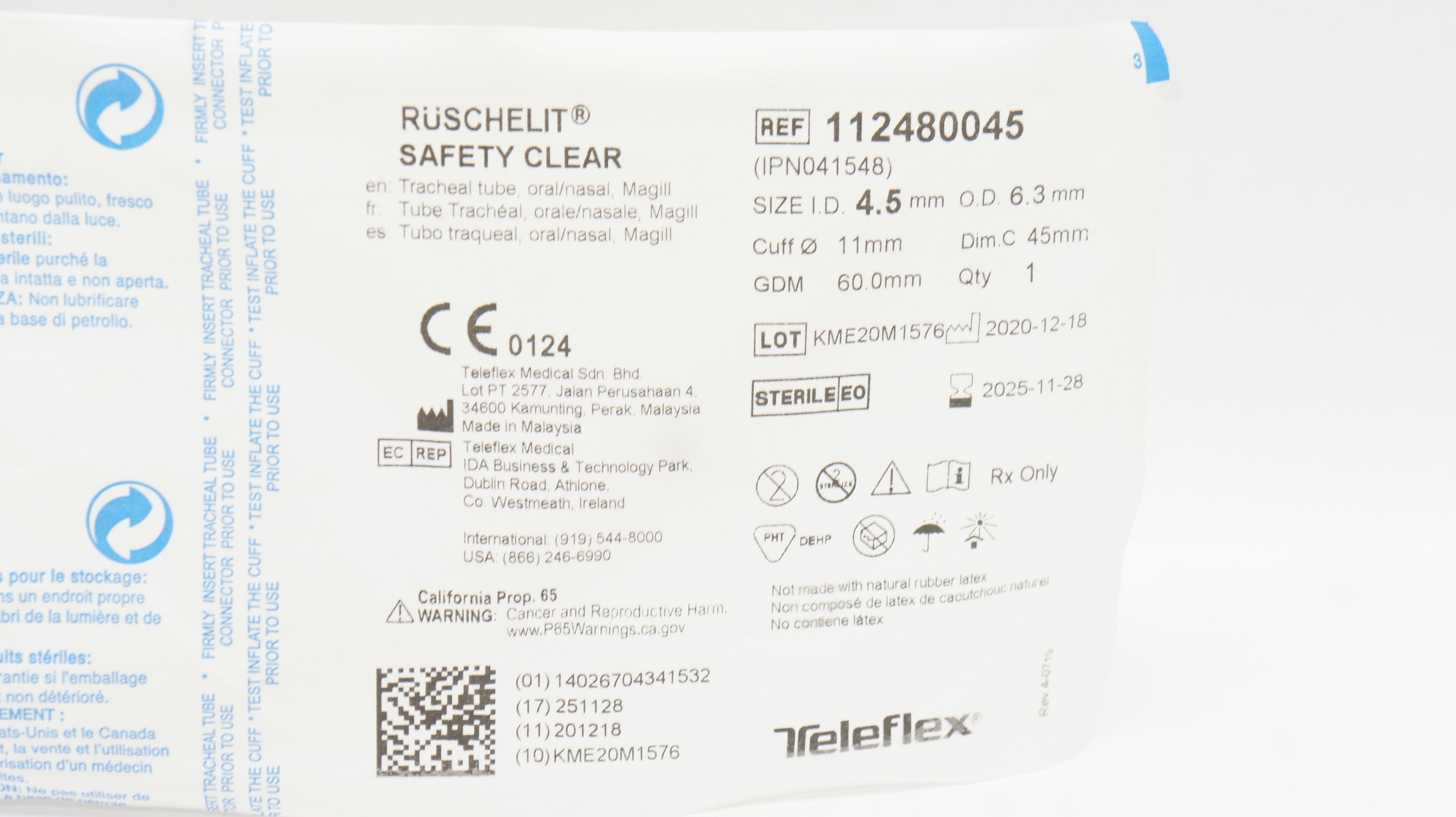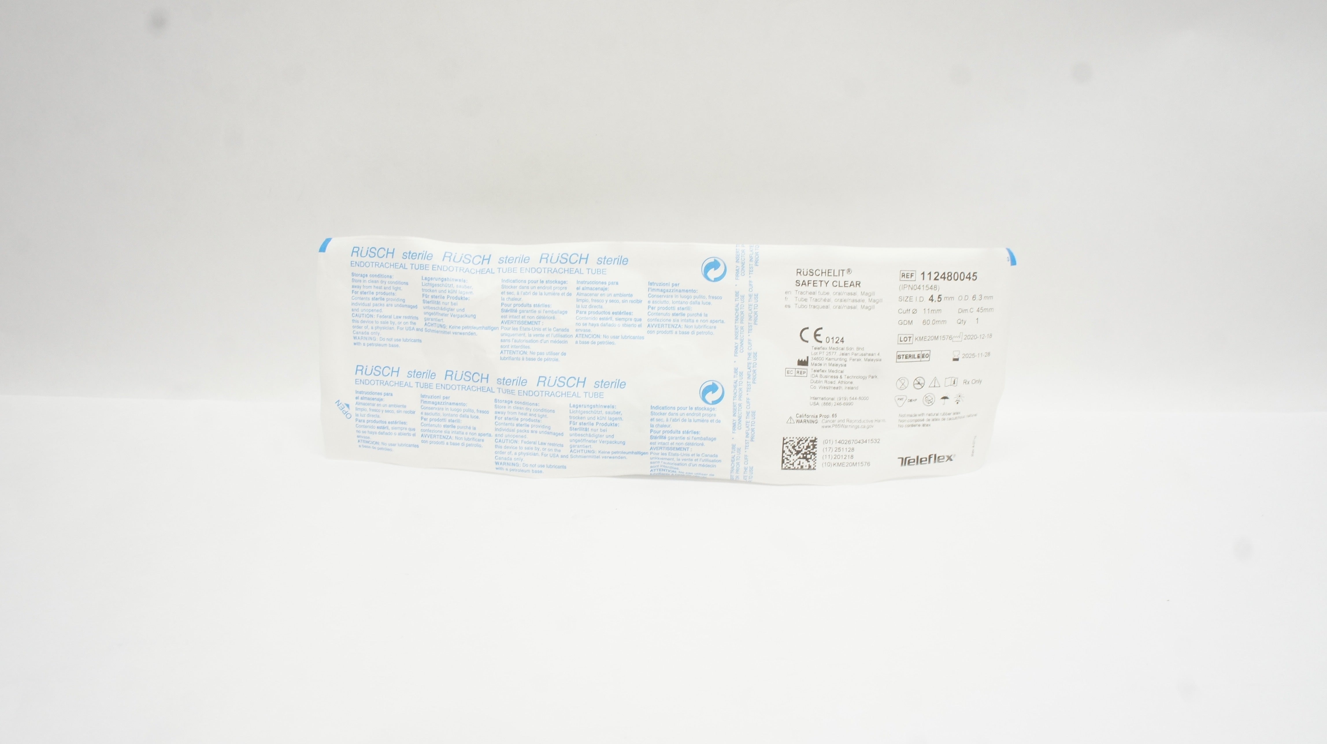 Teleflex 112480045 Ruschelit Safety Clear Tracheal Tube 4.5mm ID x 6.3mm OD
