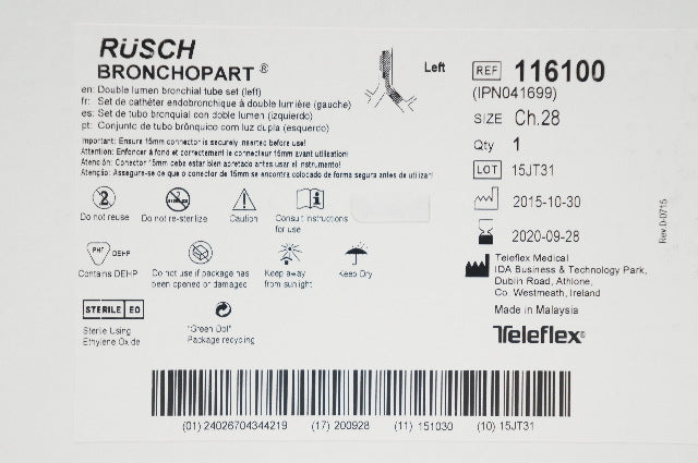 Teleflex 116100 Rusch Bronchopart Double Lumen Bronchial Tube Set Ch. 28 (x)