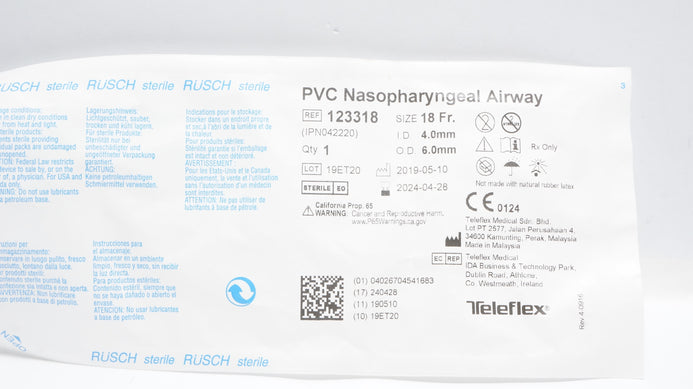 - Teleflex 123318 Rusch PVC Nasopharyngeal Airway 18Fr x ID 4.0mm x OD 6.0mm (x)