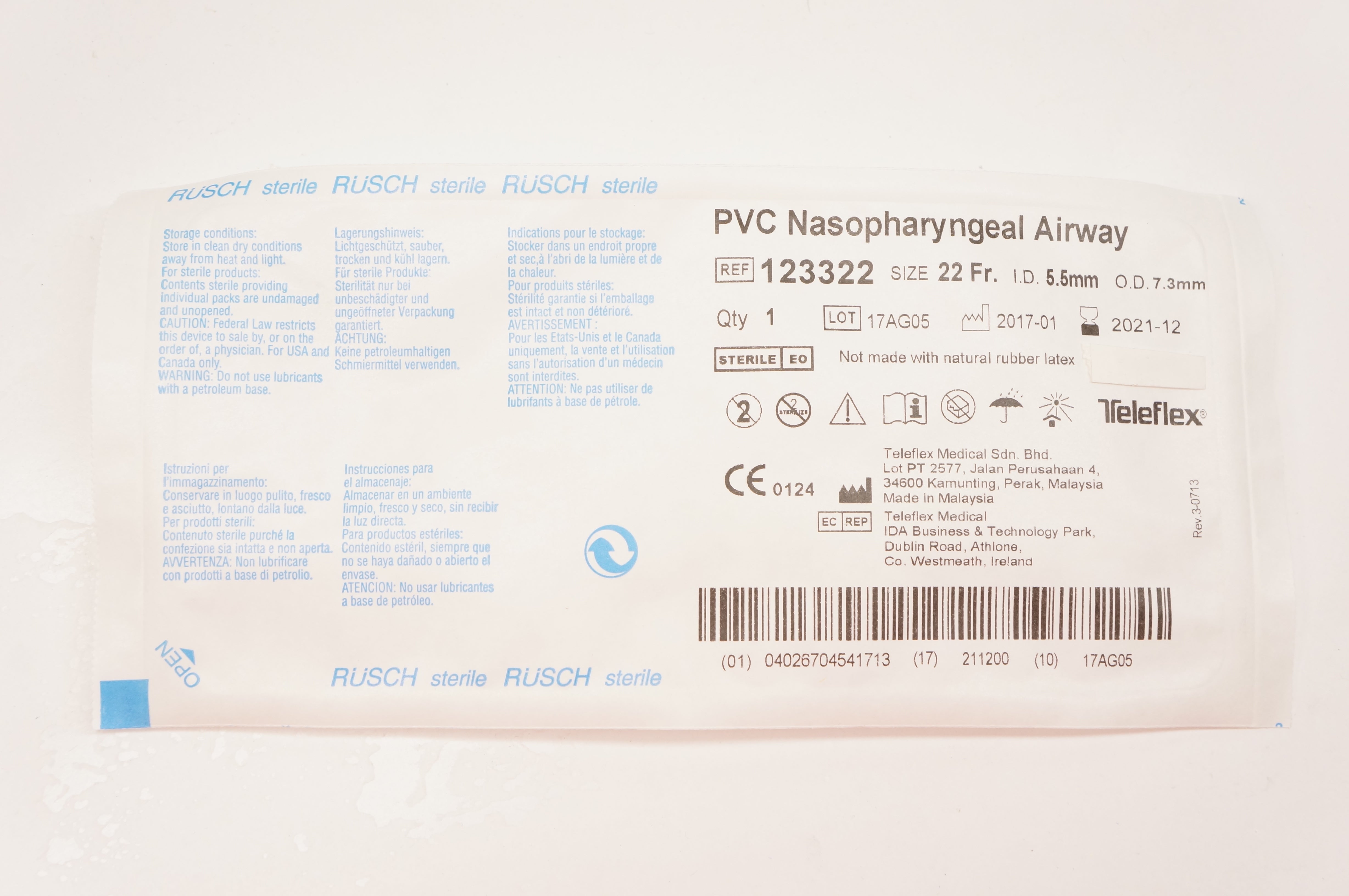 - Teleflex 123322 PVC Nasopharyngeal Airway 22Fr. - Box of 8