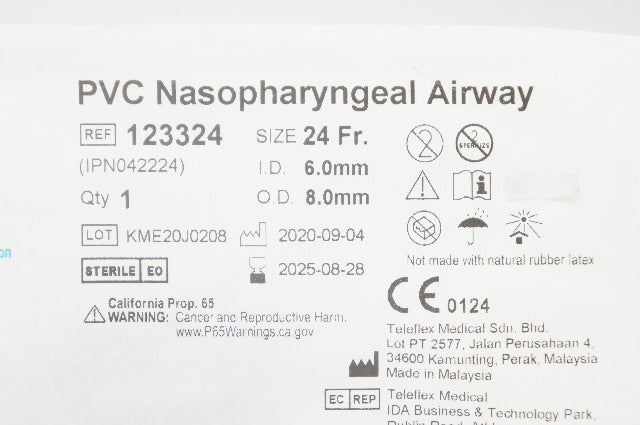 - Teleflex 123324 Rusch PVC Nasopharyngeal Airway 24 Fr x 6.0mm ID x 8.0mm OD