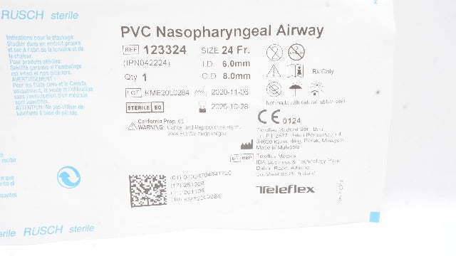 Teleflex 123324 Rusch PVC Nasopharyngeal Airway 24 Fr x 6.0mm ID x 8.0mm OD