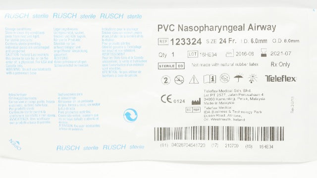 Teleflex 123324 Rusch PVC Nasopharyngeal Airway 24 Fr x 6.0mm ID x 8.0mm OD (x)