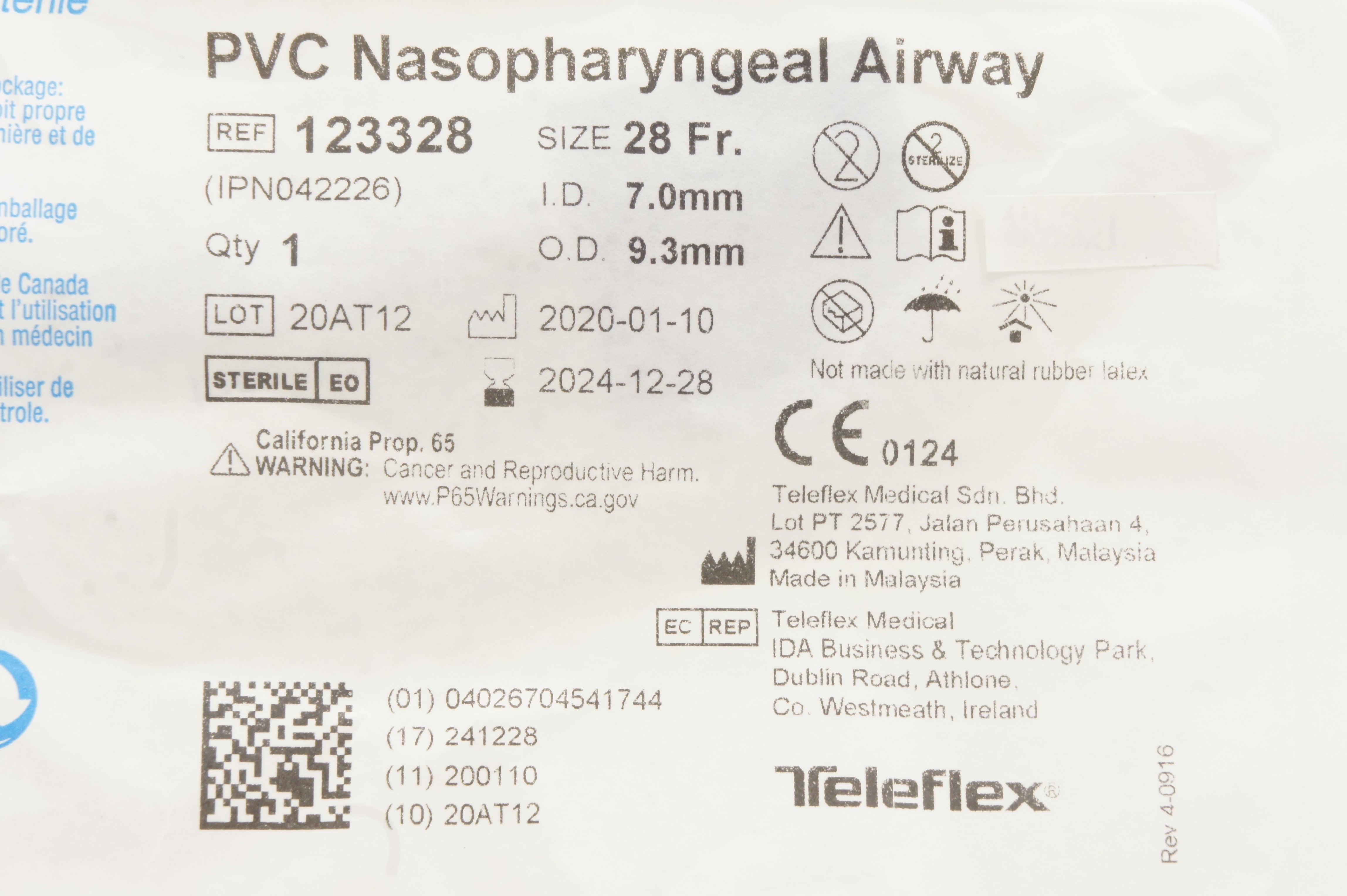 - Teleflex 123328 PVC Nasopharyngeal Airway 28 Fr. 7.0mm I.D. x 9.3mm O.D.