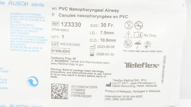 - Teleflex 123330 PVC Nasopharyngeal Airway 30 Fr. 7.5mm x 10.0mm