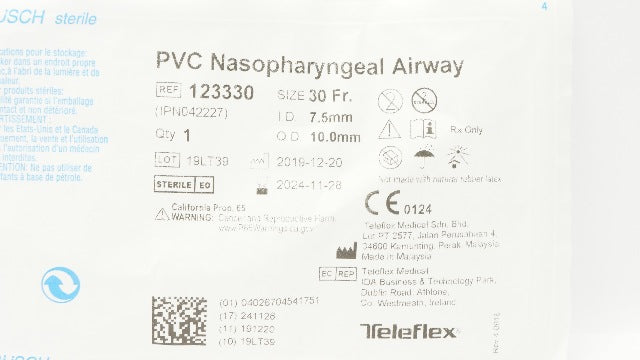 - Teleflex 123330 PVC Nasopharyngeal Airway 30Fr., 7.5mm x 10mm (x)