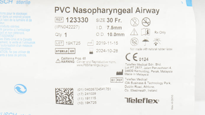 - Teleflex 123330 Rusch PVC Nasopharyngeal Airway 30 Fr x 7.5 I.D. x 10.0 O.D. mm