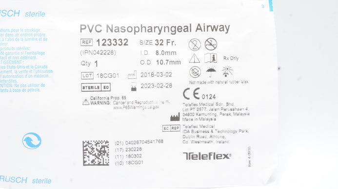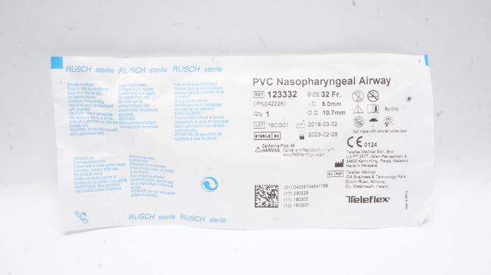 - Teleflex 123332 PVC Nasopharyngeal Airway 32 Fr. 8.0mm I.D. x 10.7mm O.D. (x)