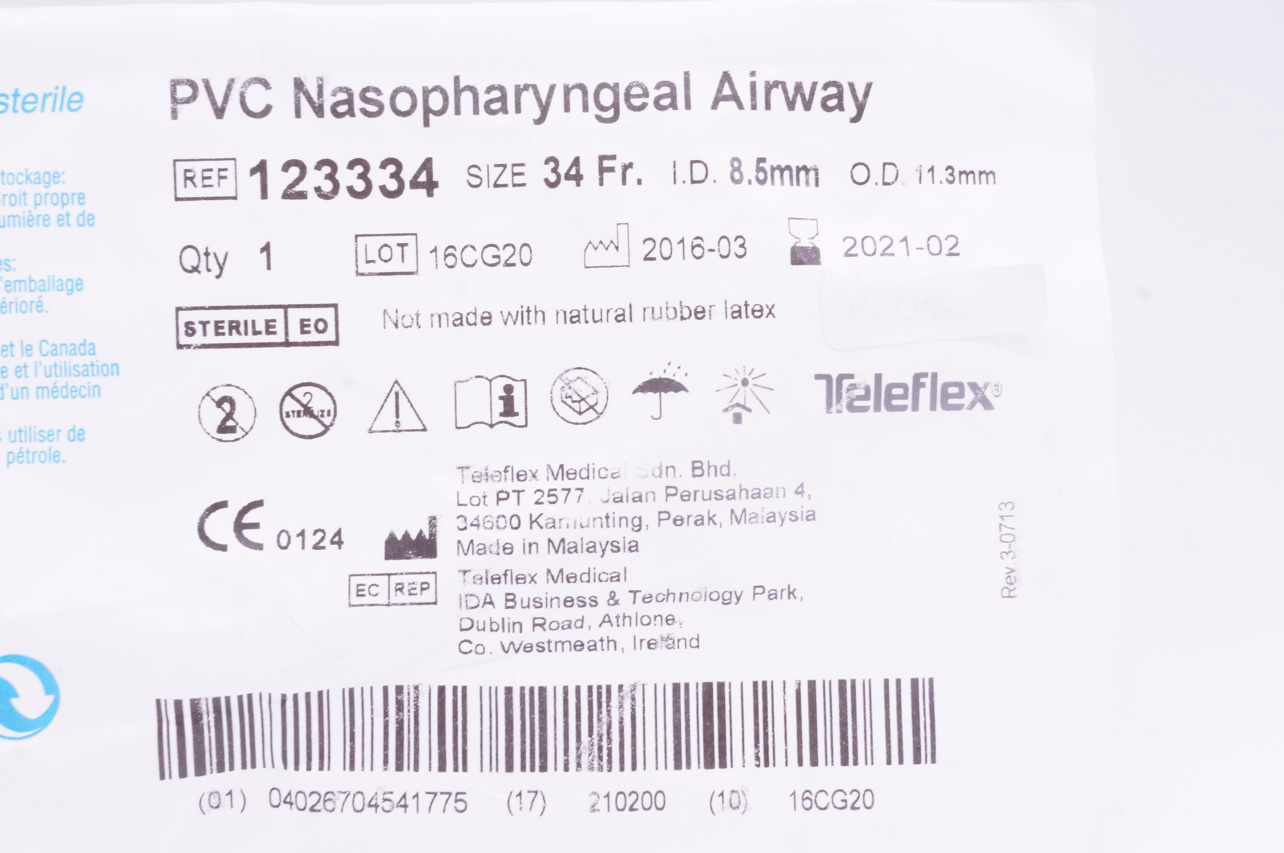 Teleflex 123334 PVC Nasopharyngeal Airway  34 Fr. 8.5mm x 11.3mm