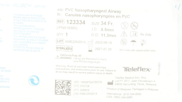 Teleflex 123334 PVC Nasopharyngeal Airway  34 Fr. 8.5mm x 11.3mm