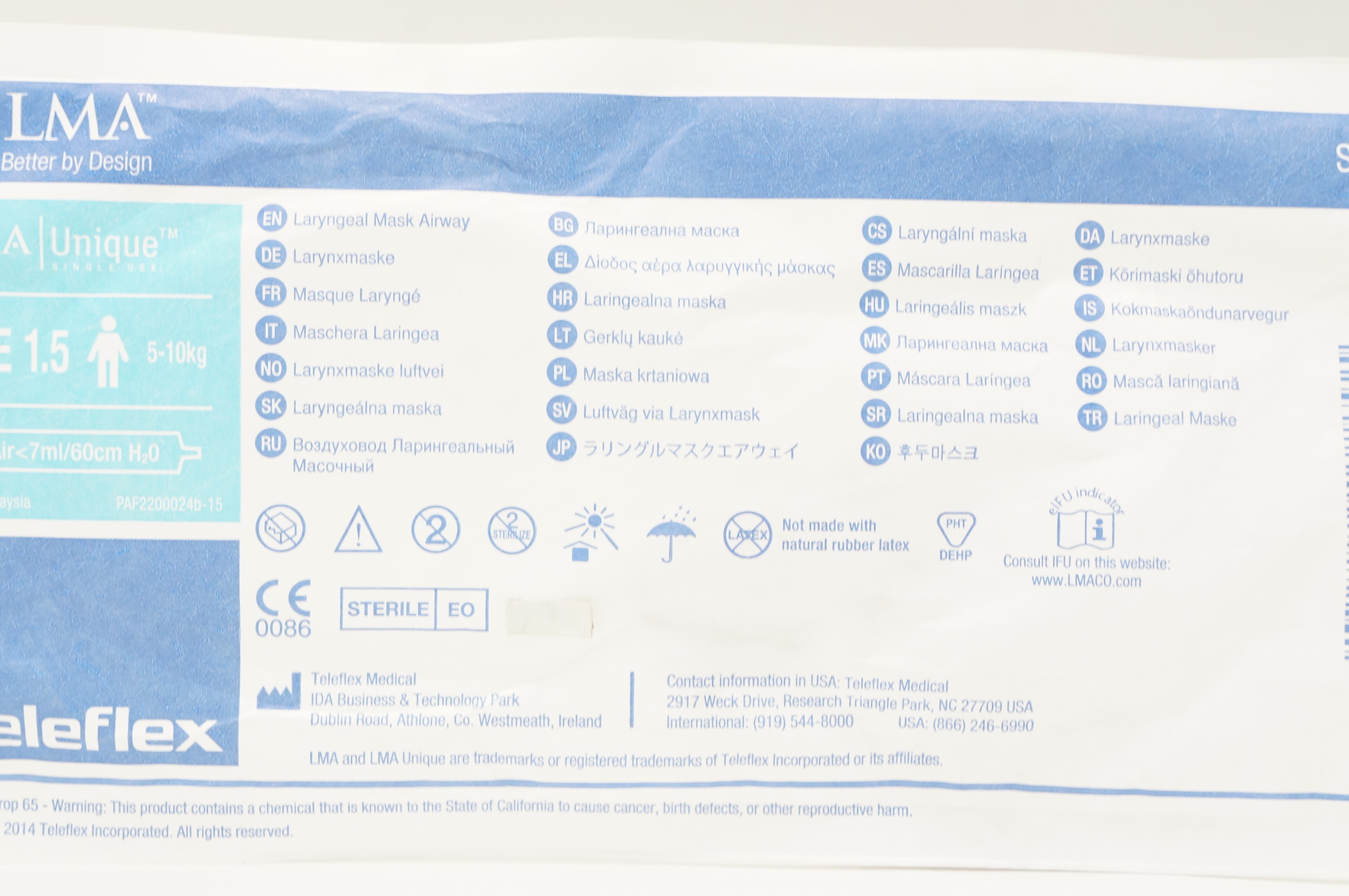 - Teleflex 125015 LMA Unique Laryngeal Mask Airway Size: 1.5 5-10kg
