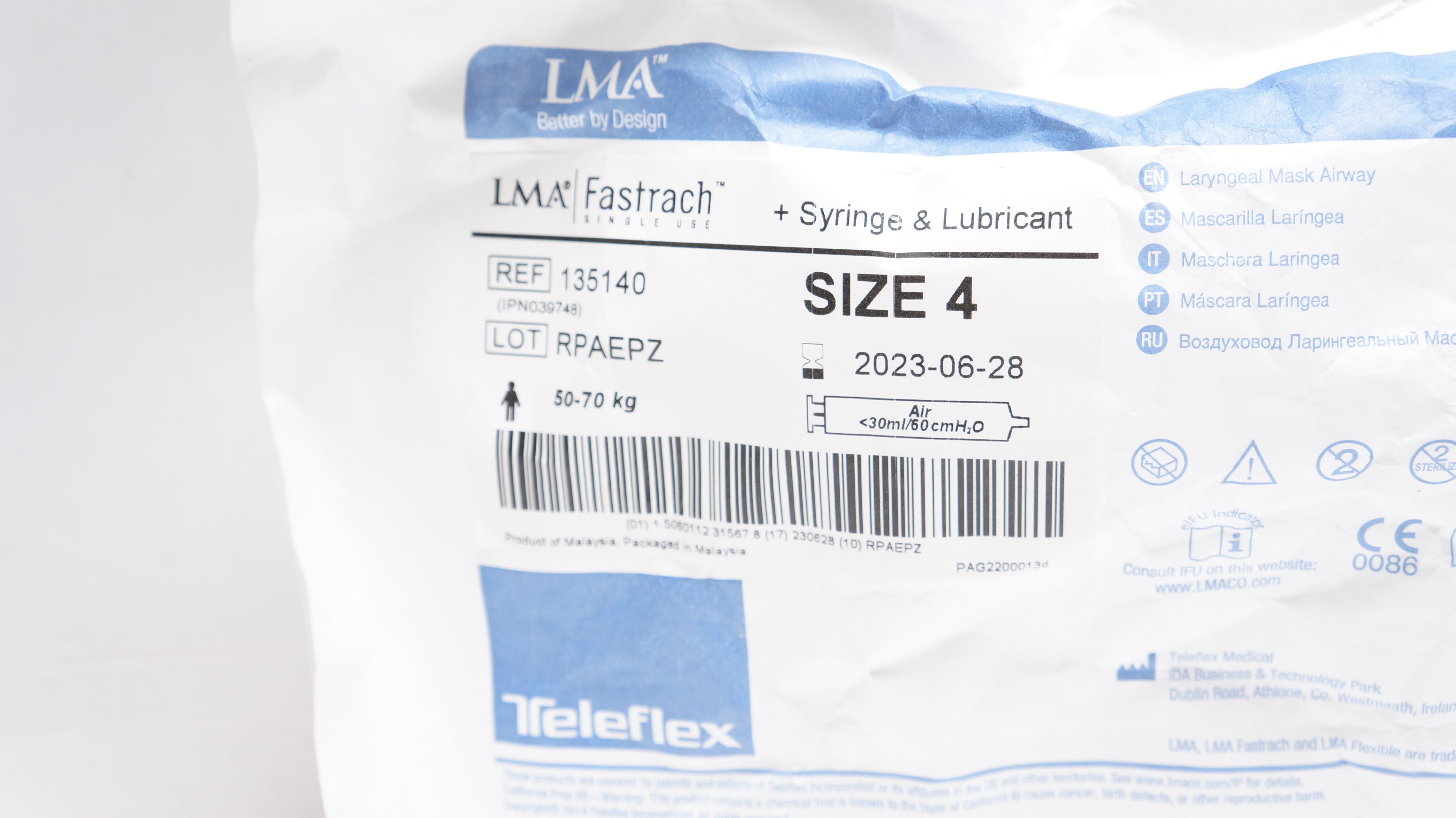 Teleflex 135140 LMA Laryngeal Mask Airway Fastrach Syringe & Lubricant Size 4
