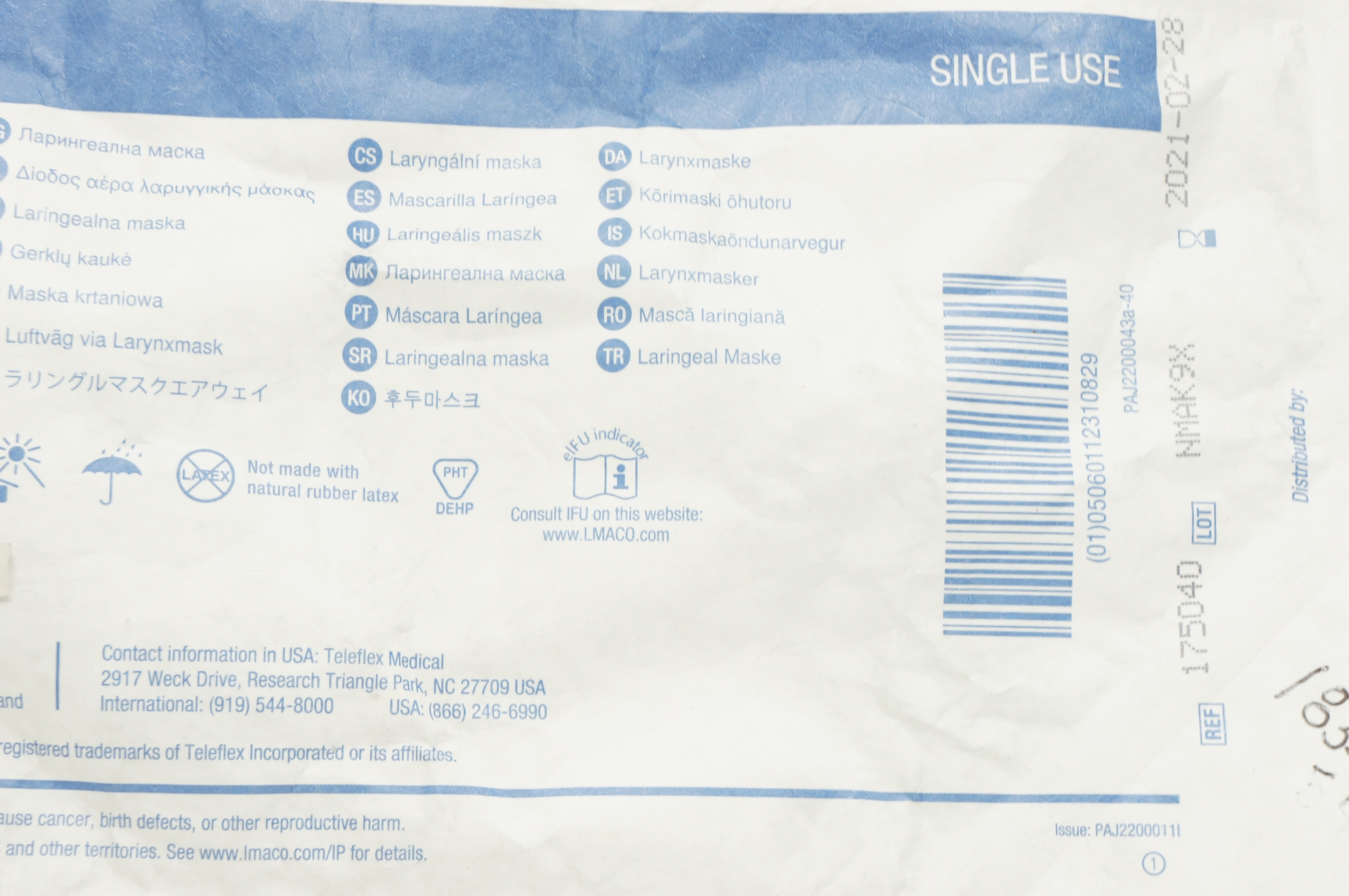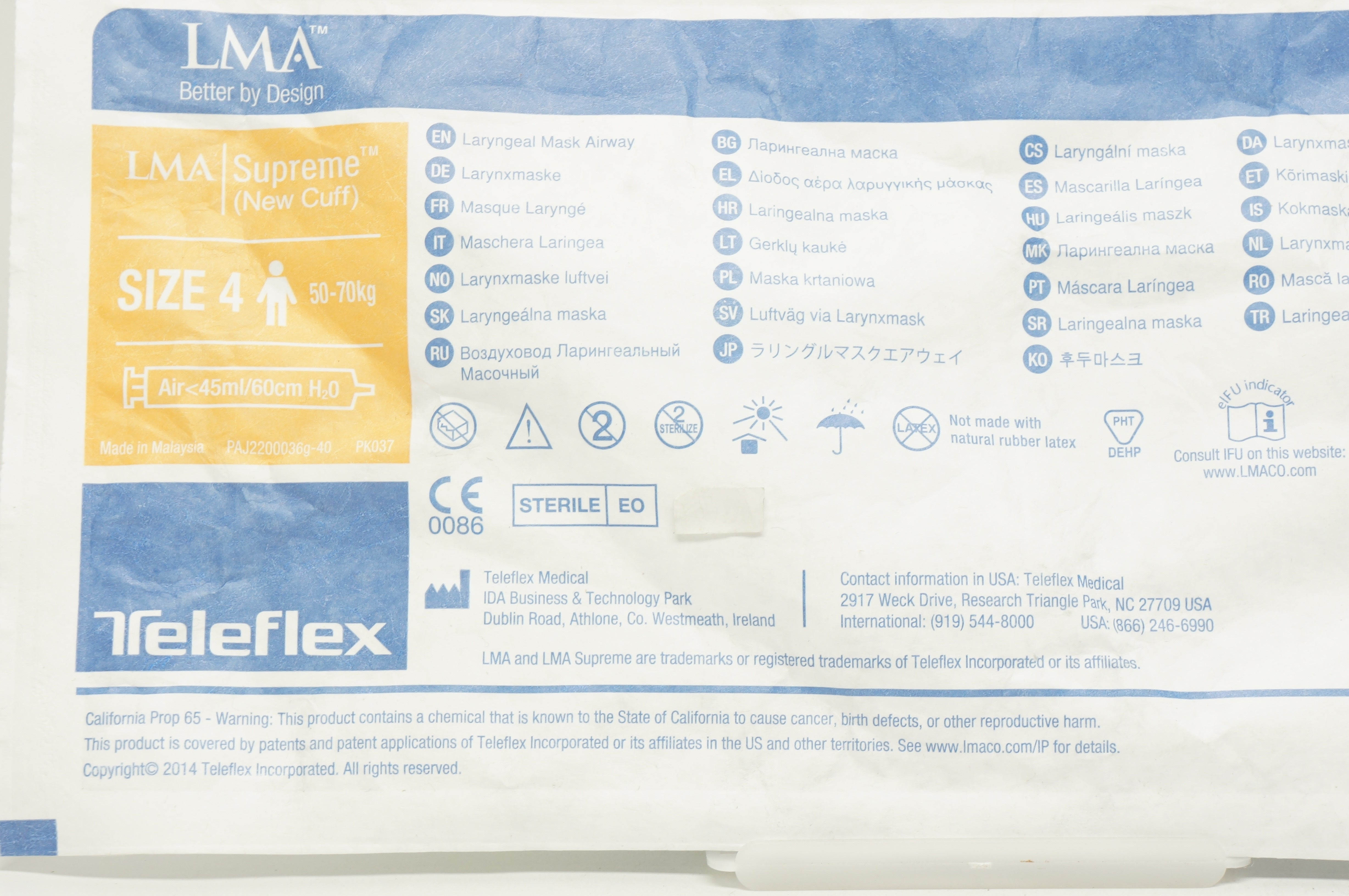 - Teleflex 175040 LMA Supreme Laryngeal Mask Airway, Size 4 50-70kg (x)