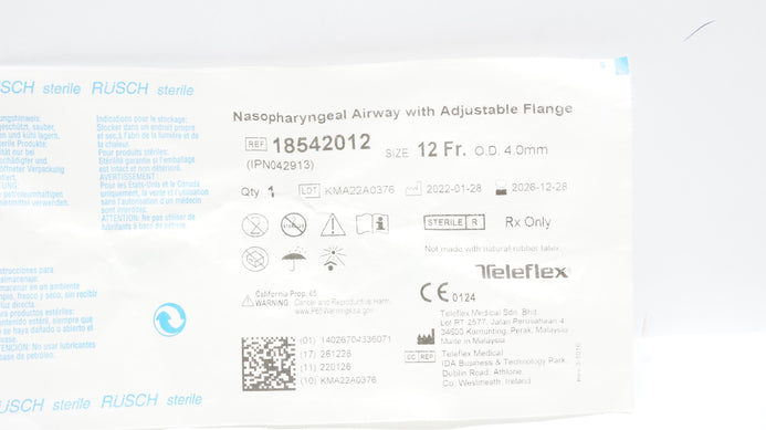 - Teleflex 18542012 Rusch Nasopharyngeal Airway w/Adjustable Flange 12Fr x 4.0mmOD