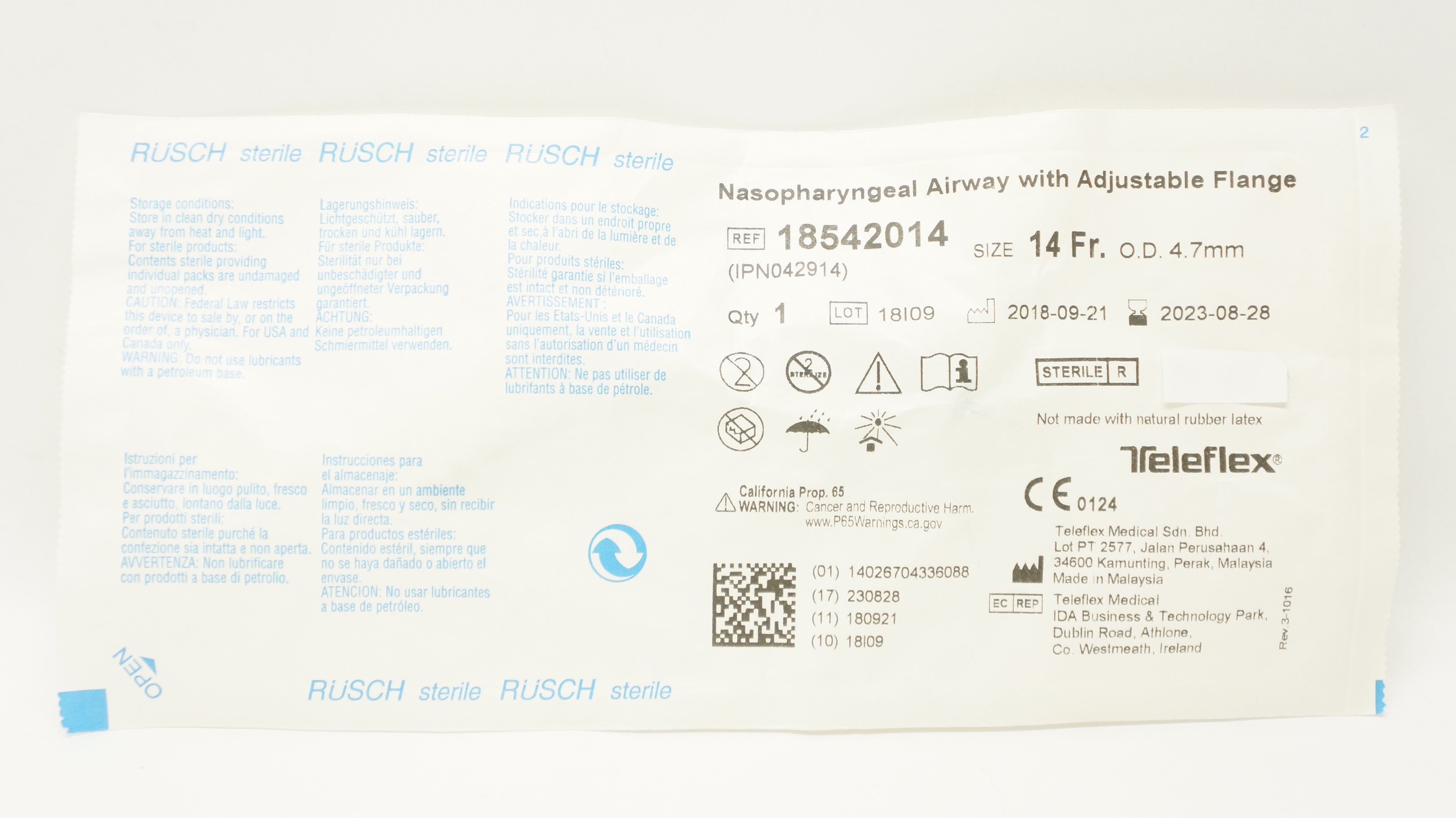 - Teleflex 18542014 Rusch Nasopharyngeal Airway w/Adjustable Flange 14Fr x4.7mm OD