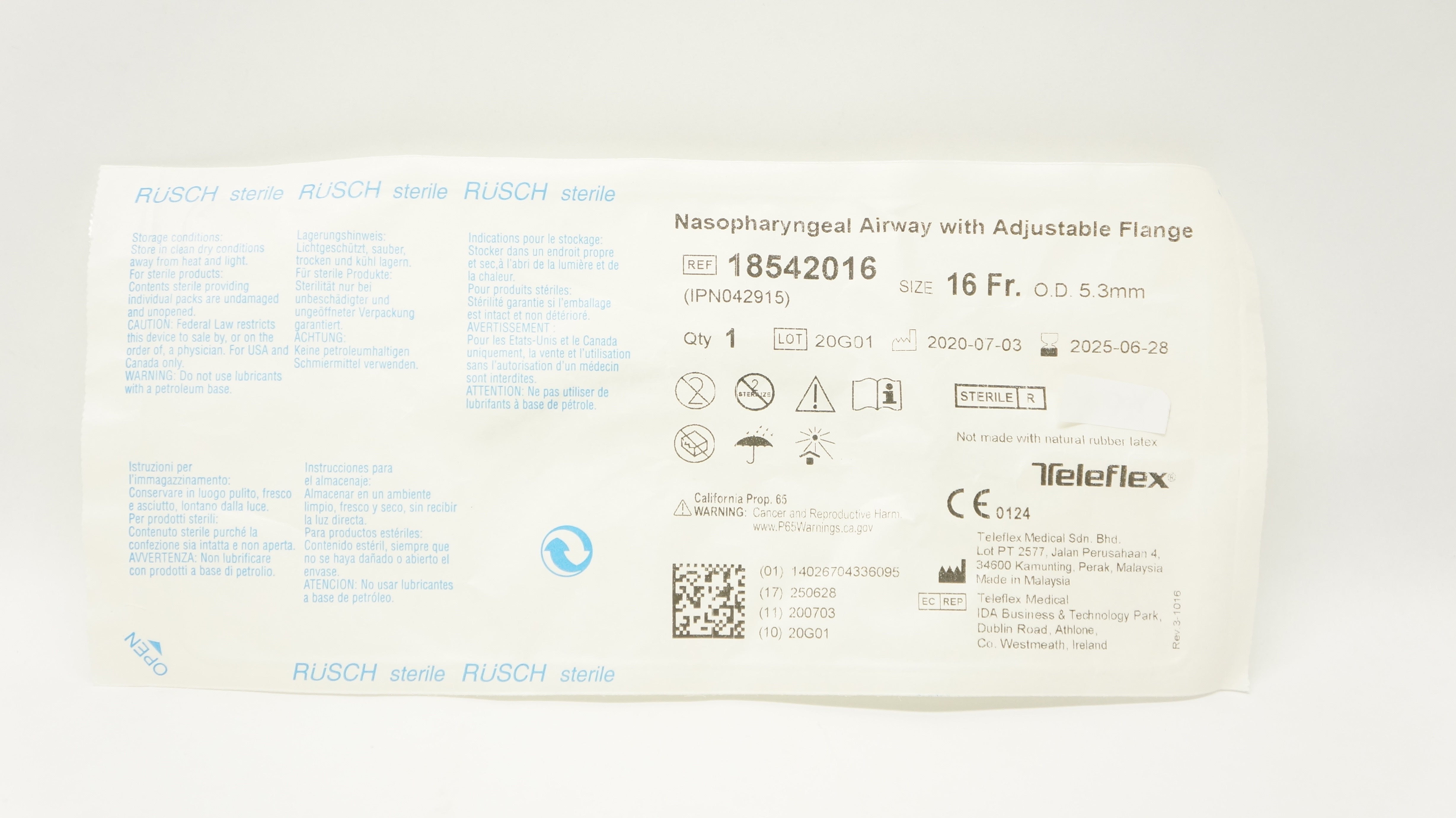 - Teleflex 18542016 Rusch Nasopharyngeal Airway w/Adjustable Flange 16Fr x5.3mm OD