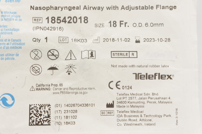 - Teleflex 18542018 Nasopharyngeal Airway with Adjustable Flange 18Fr