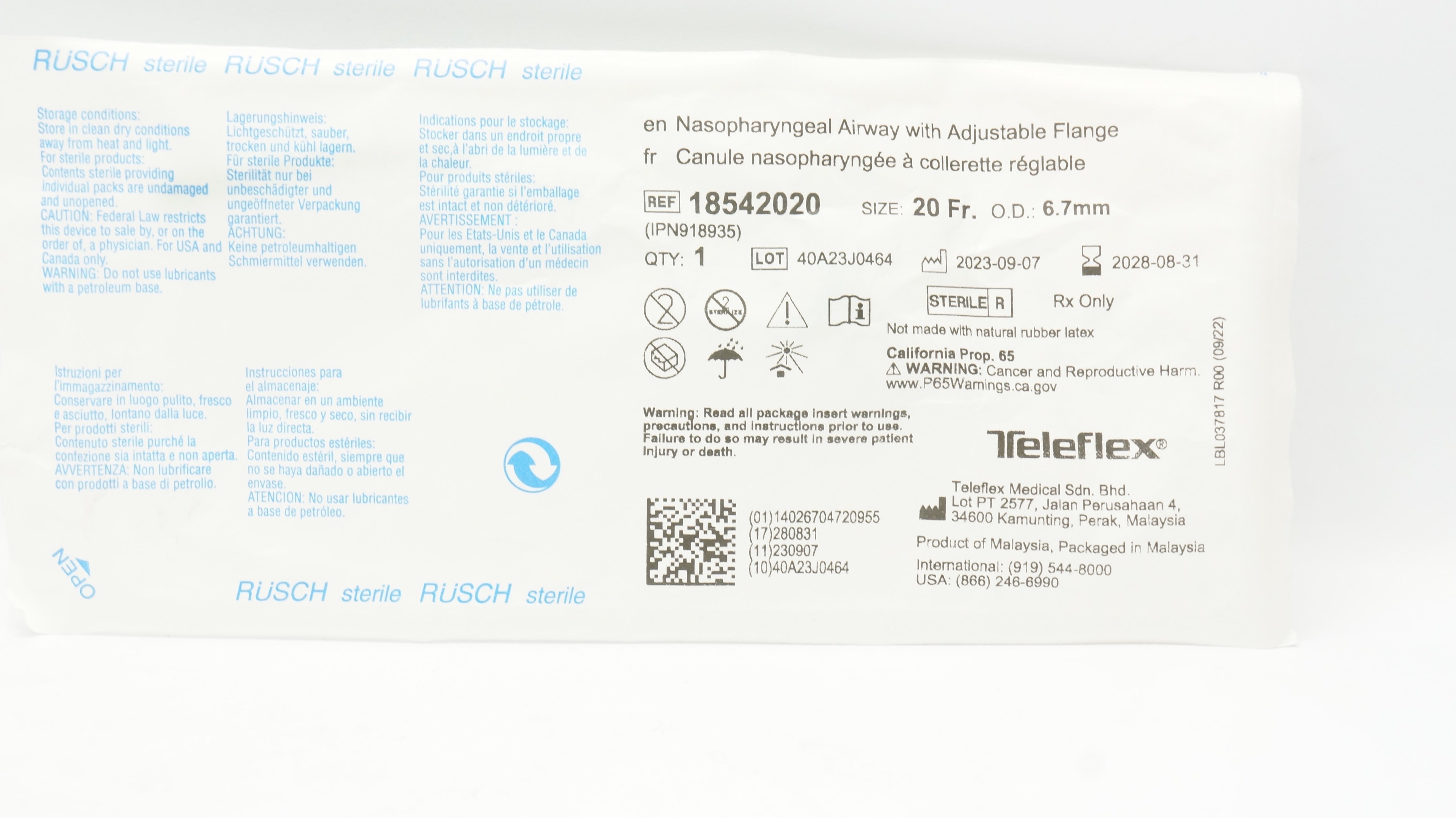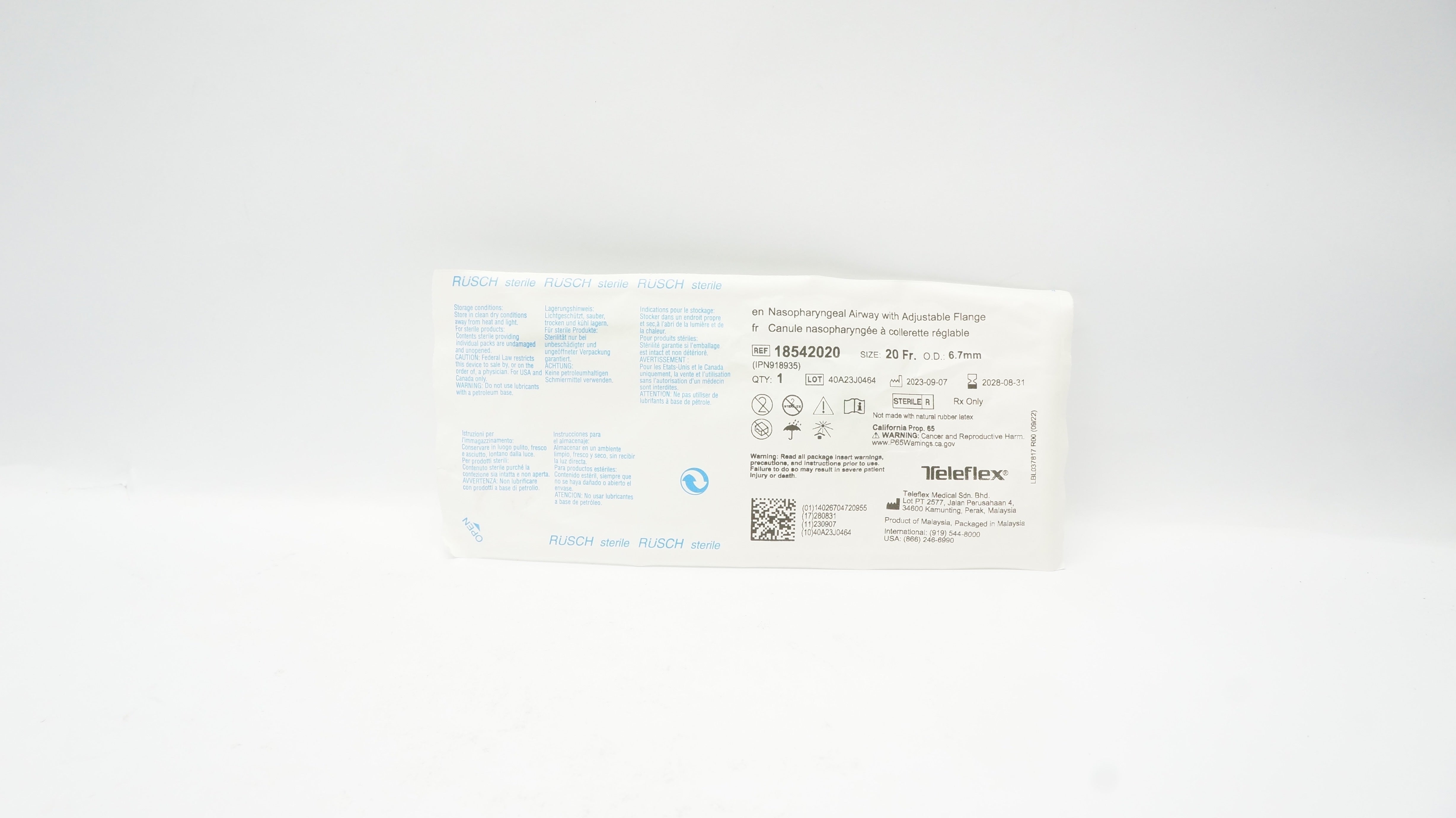 Teleflex 18542020 Rusch Nasopharyngeal Airway w/Adjustable Flange 20Fr x 6.7mmOD