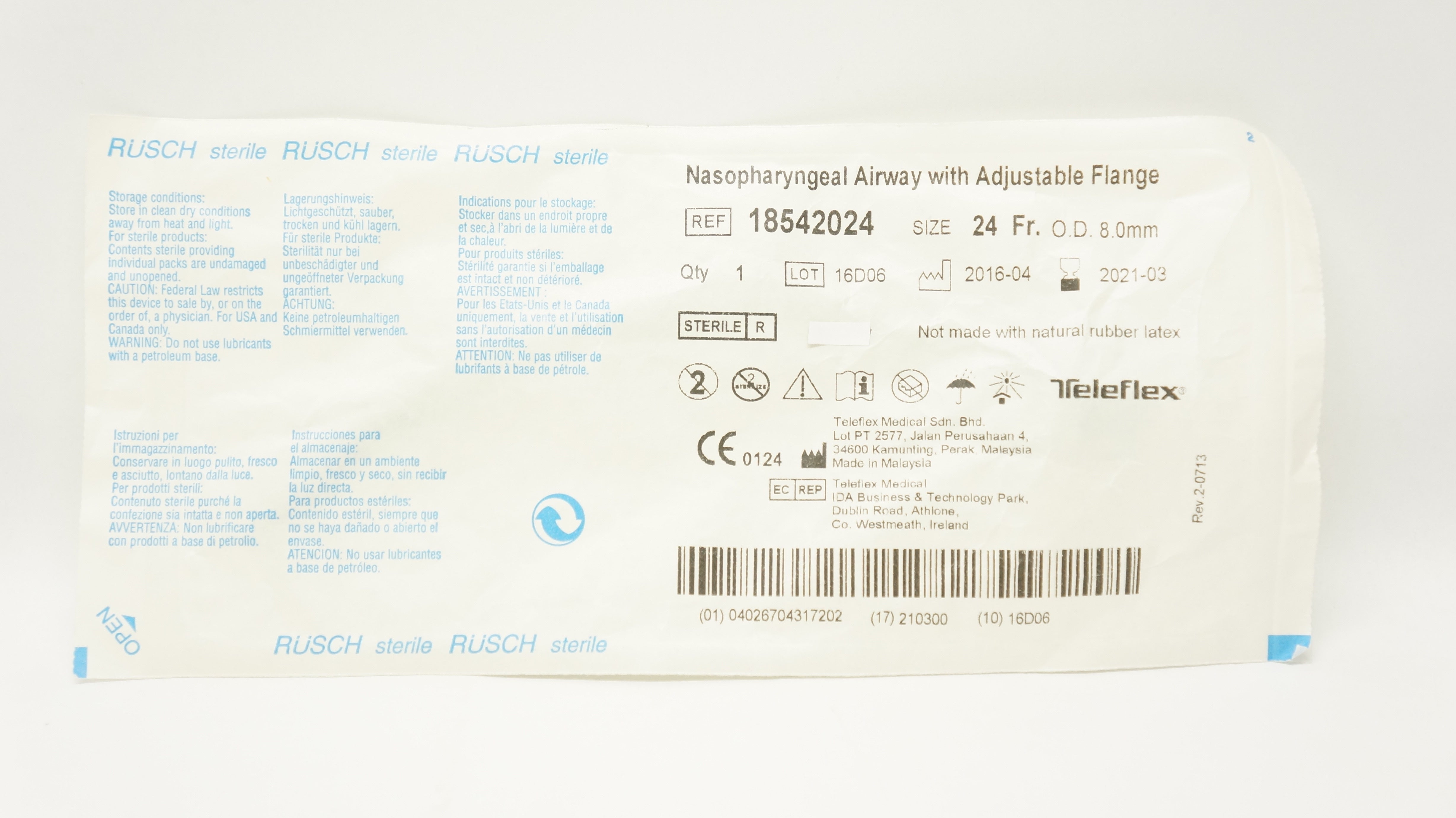 - Teleflex 18542024 Rusch Nasopharyngeal Airway 24Fr x 0.8mm O.D. (x)