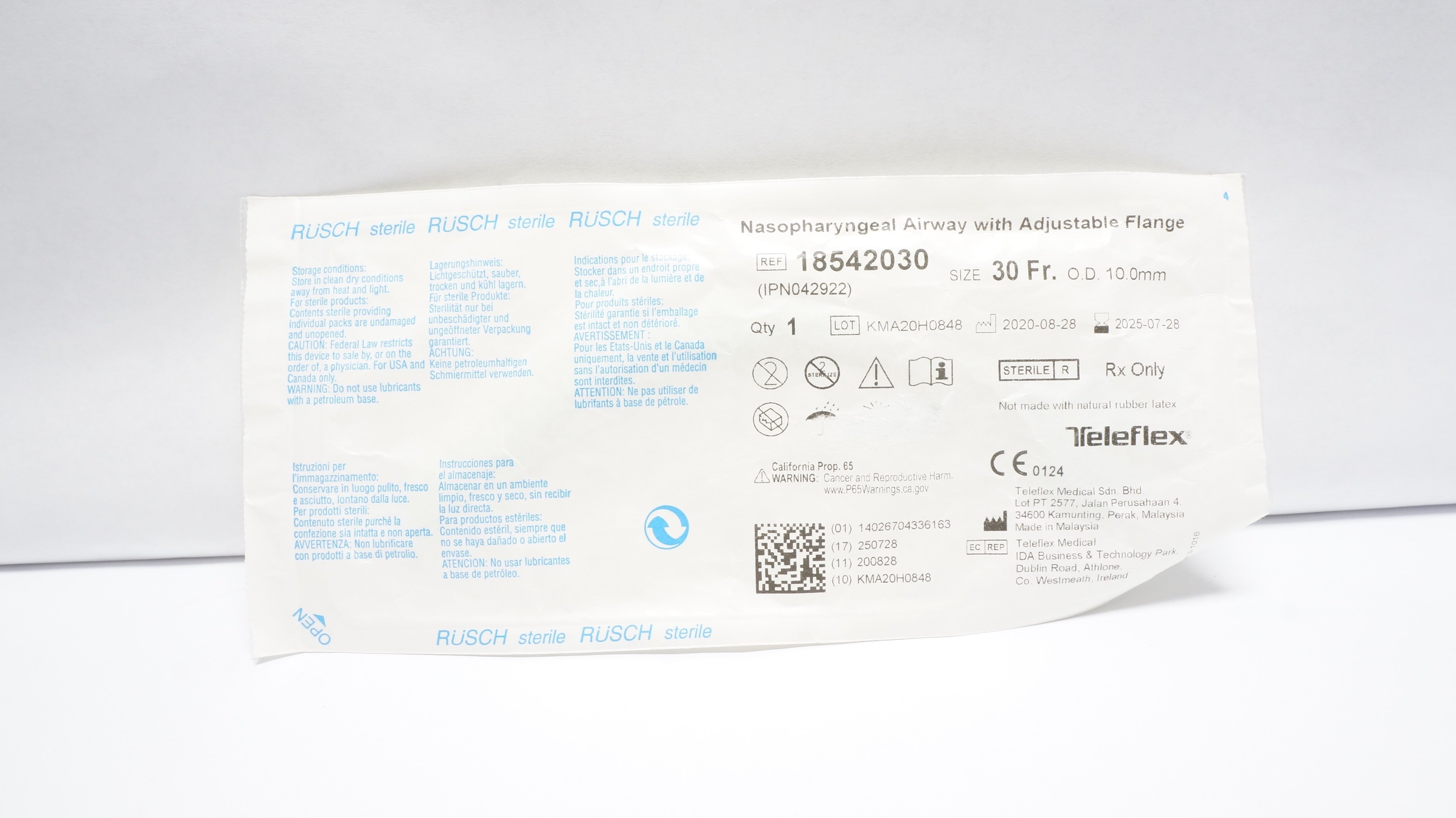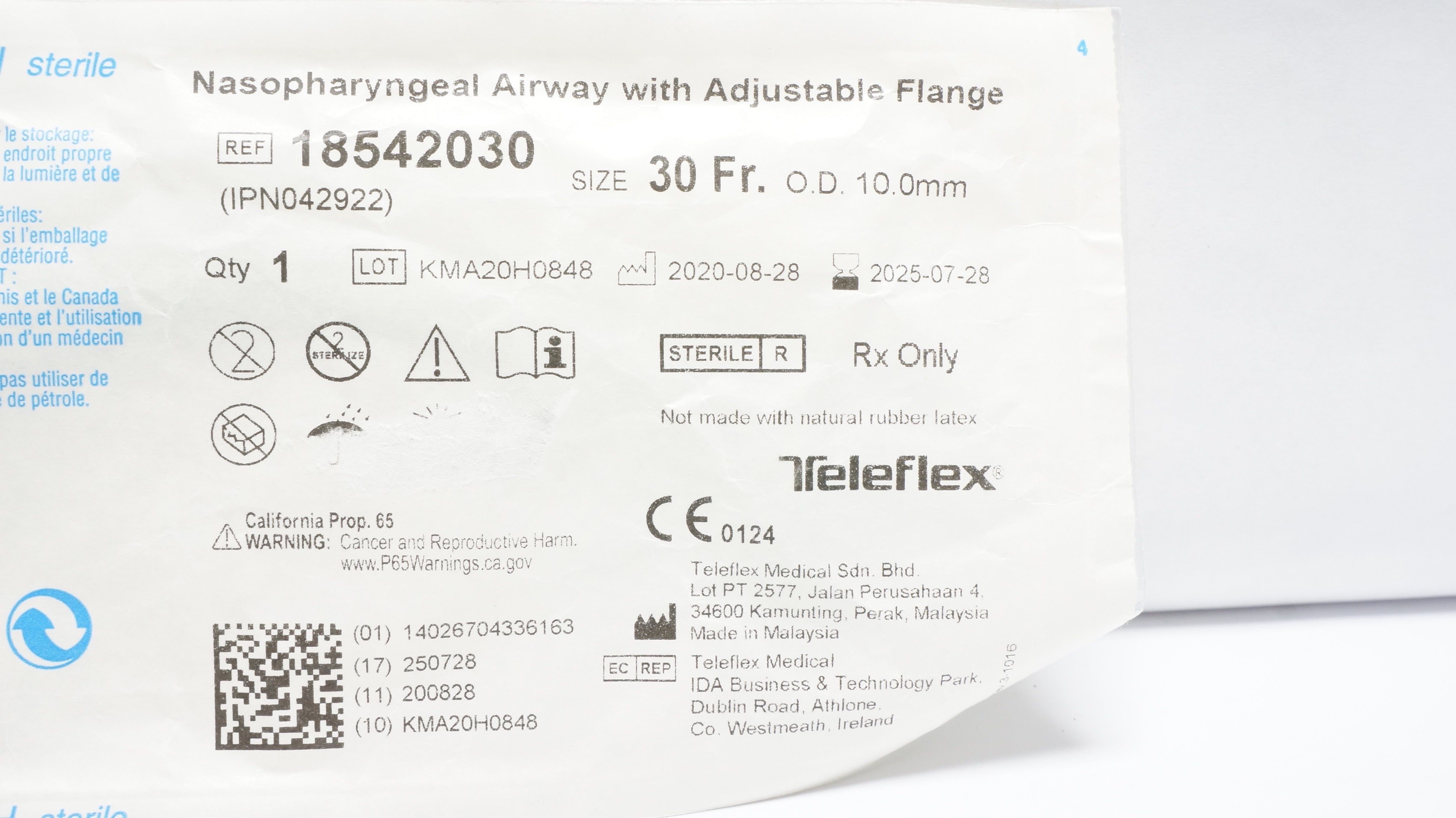 - Teleflex 18542030 Nasopharyngeal Airway with Adjustable Flange 30Fr. x 10mm (x)