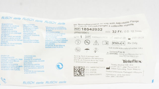 Teleflex 18542032 Nasopharyngeal Airway W/Adjustable Flange, Size 32Fr 10.7mm OD