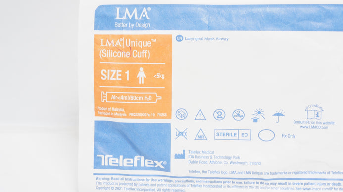 - Teleflex 1FA010 LMA Unique Laryngeal Mask Airway, Size 1 <5kg Air<4ml/60cm H2O(x)