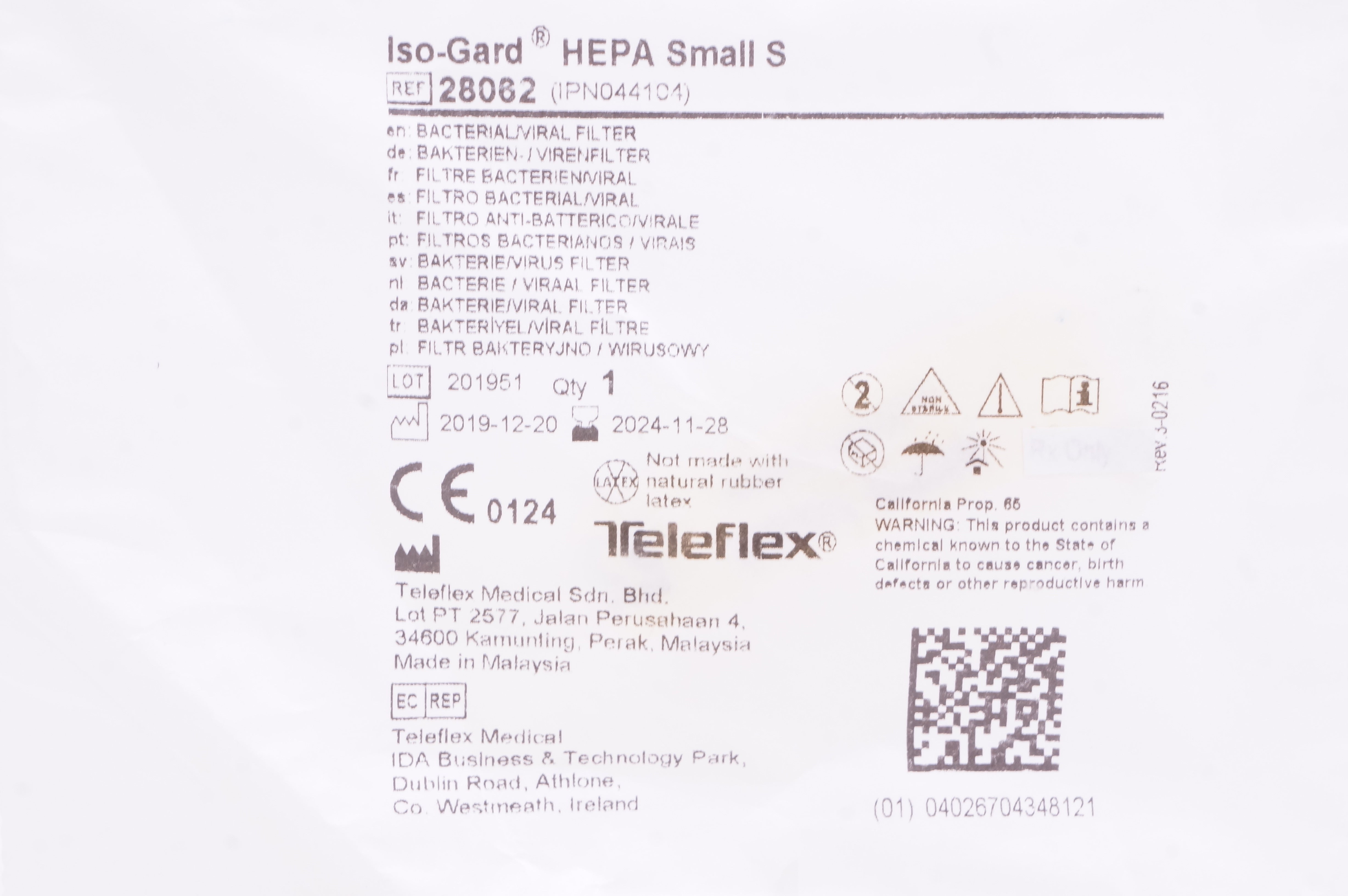 - Teleflex 28062 Iso-Gard Hepa Small S