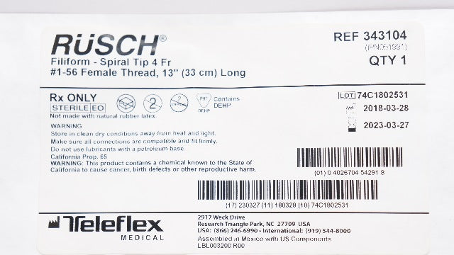 - Teleflex 343104 Rusch Filiform-Spiral Tip 4Fr #1-56 Female Thread 13inch (x)
