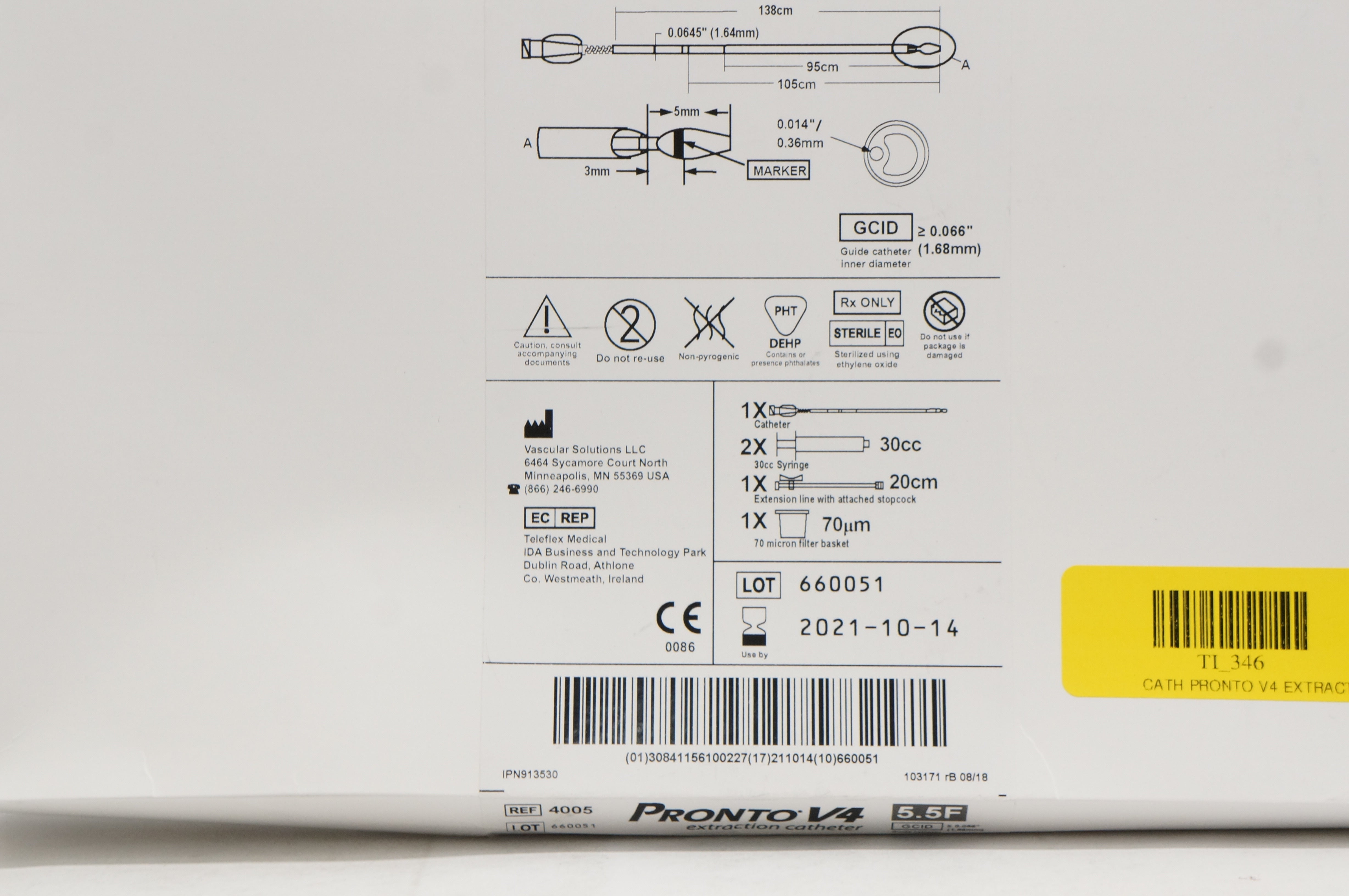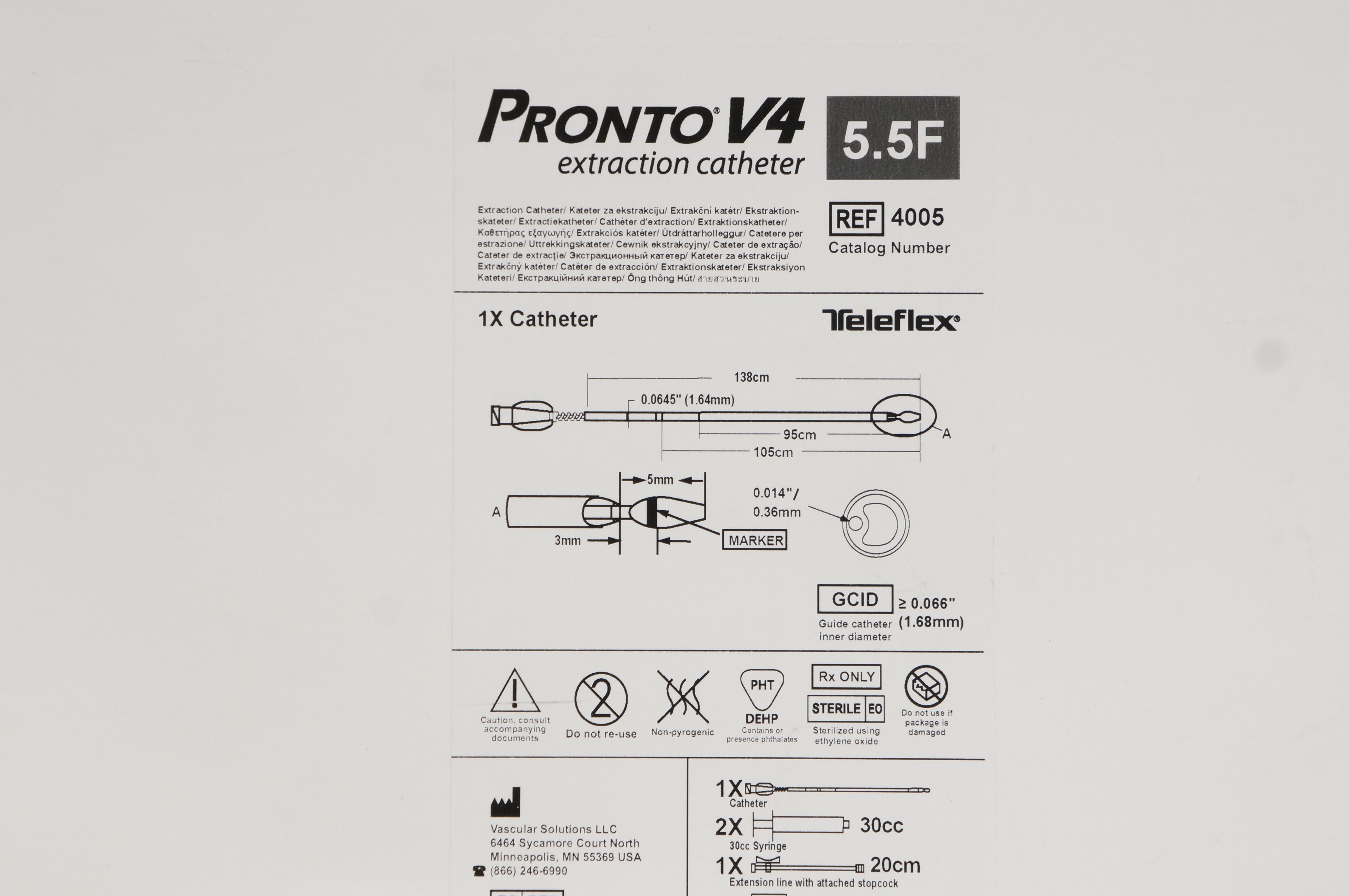 Teleflex 4005 Pronto V4 Extraction Catheter 5.5F x 138cm GCID≥ 0.066inch