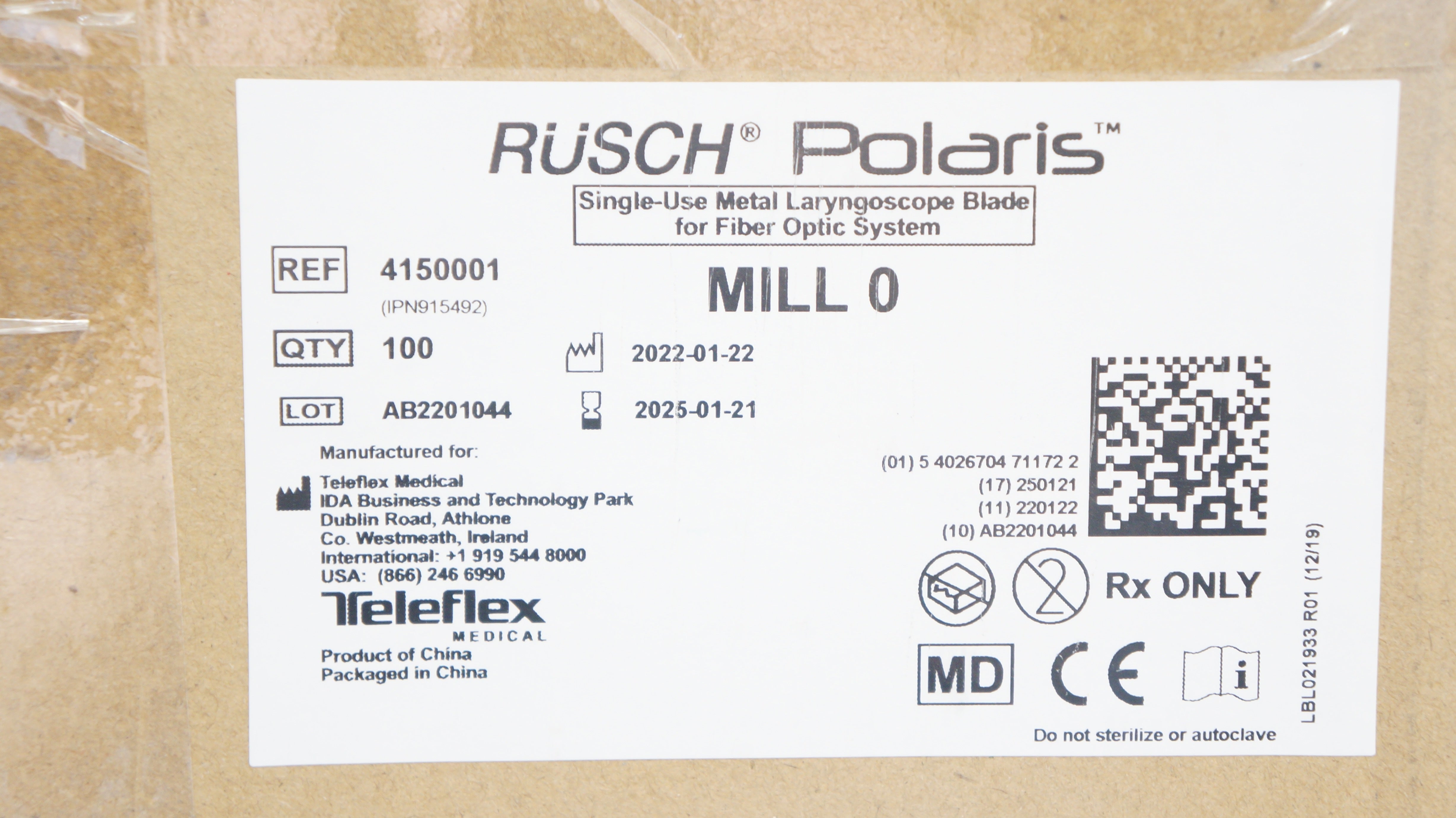 - Teleflex 4150001 Rusch Polaris FO Laryngoscope Blade MILL 0 - Case of 100