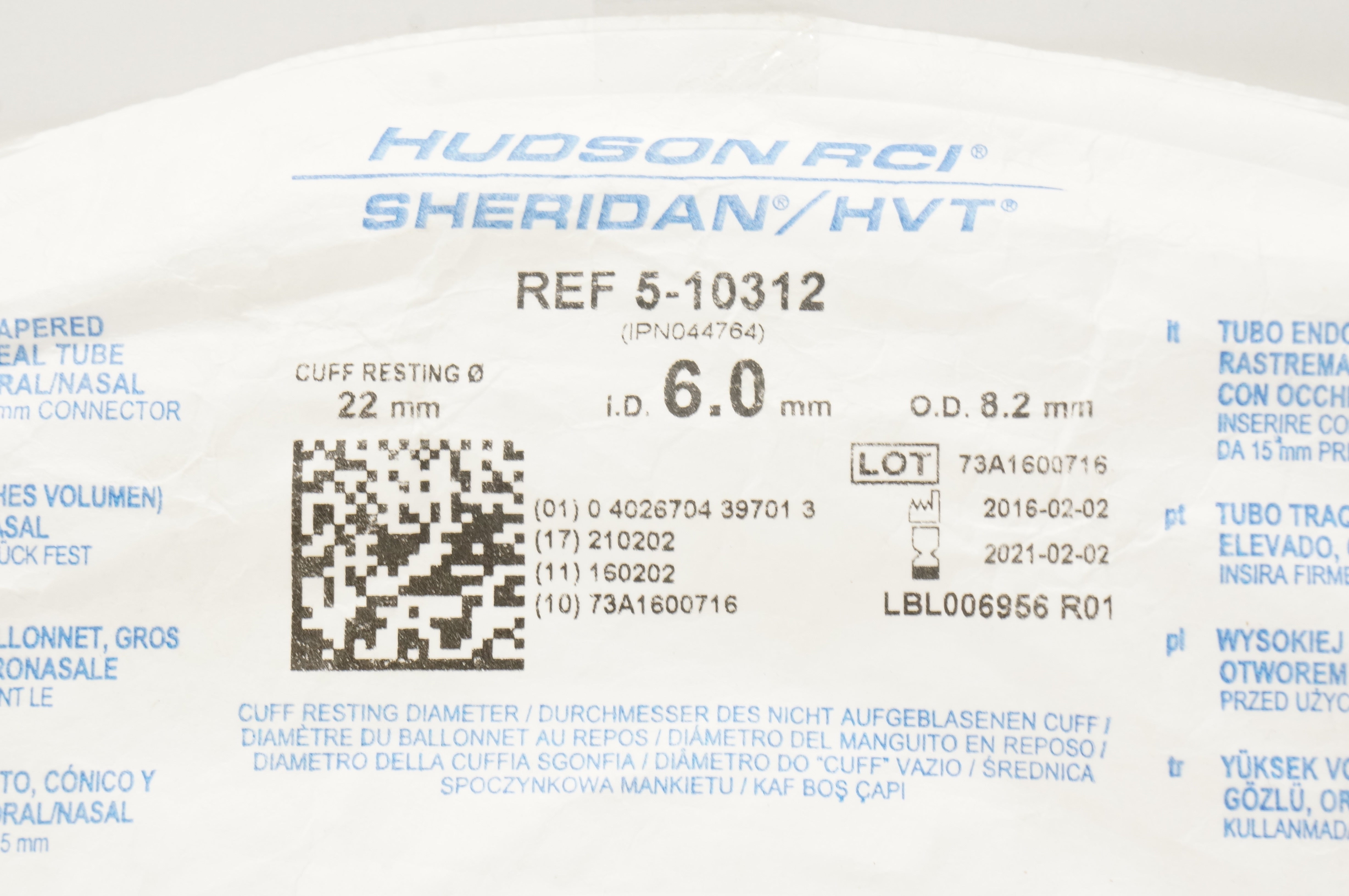 - Teleflex 5-10312 Hudson RCI Sheridan HVT Cuffed Tracheal Tube 6.0x8.2x22 mm (x)