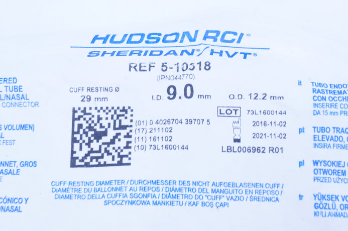Teleflex 5-10318 Tapered Cuffed Tracheal Tube Oral/Nasal 9.0mm ID x 12.2mm OD