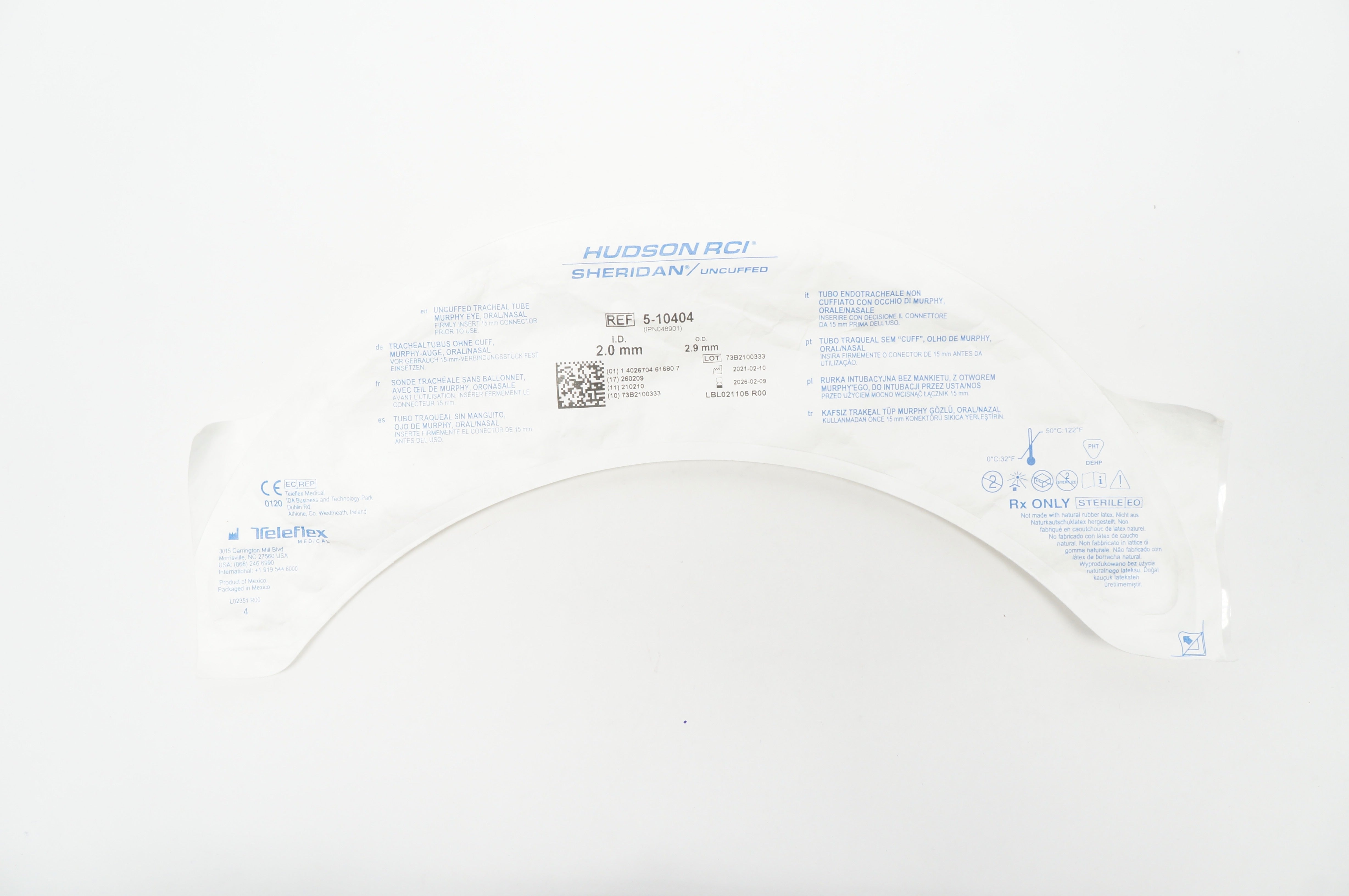 - Teleflex 5-10404 Hudson RCI Sheridan HVT Uncuffed Tracheal Tube 2.0 ID x 2.9mmOD
