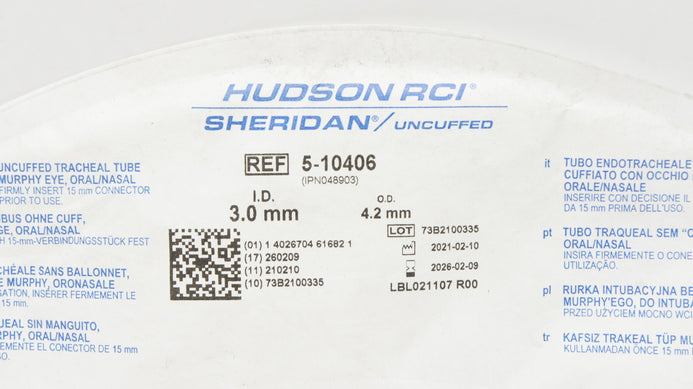 Teleflex 5-10406 Hudson RCI Uncuffed Tracheal Tube Murphy Eye 3.0 ID x 4.2mm OD