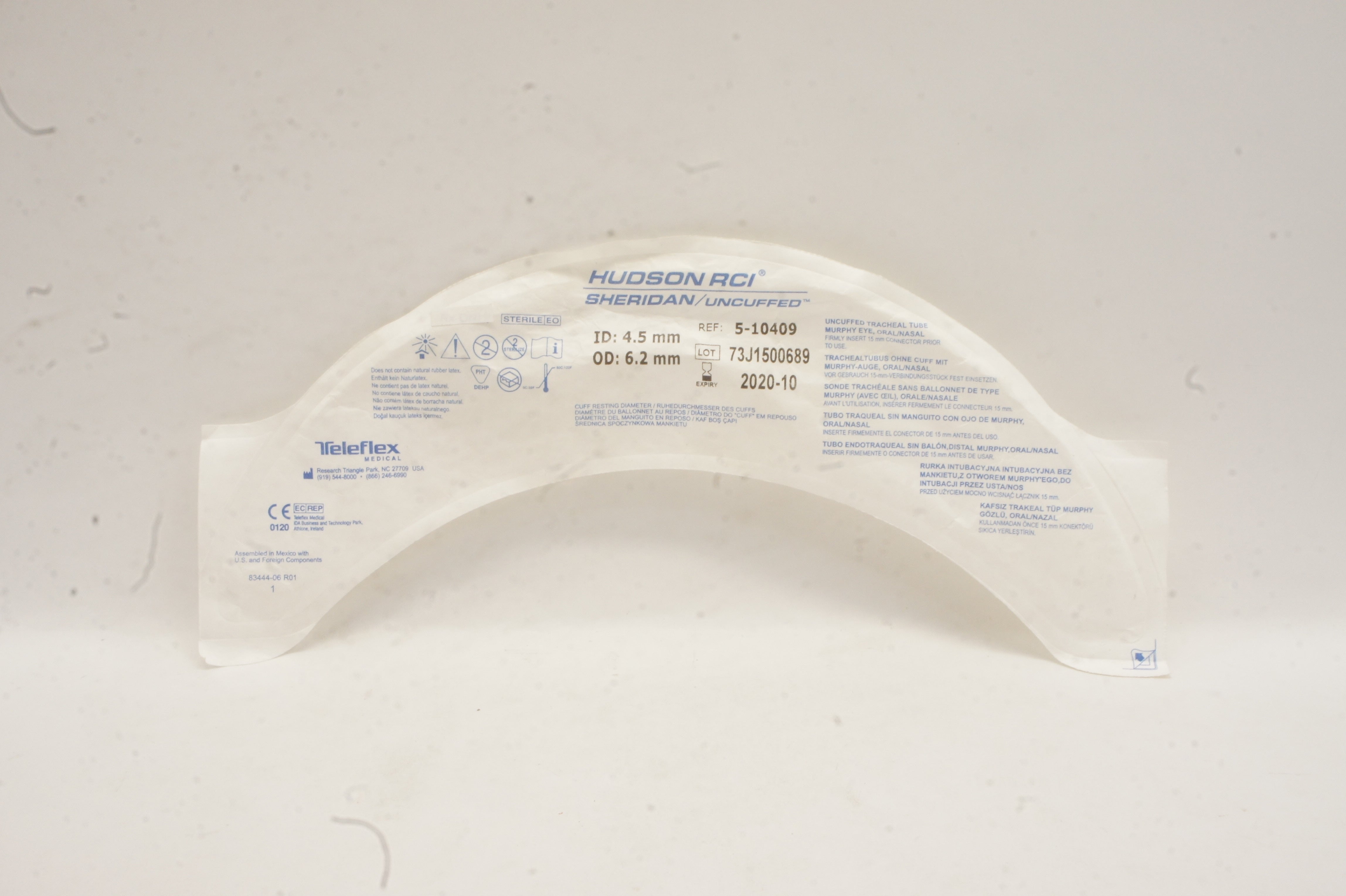 Teleflex 5-10409 Hudson RCI Sheridan Uncuffed Tracheal Tube 4.5mm x 6.2mm (x)
