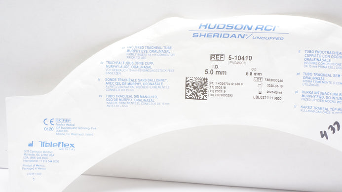 - Teleflex 5-10410 Hudson RCI Sheridan Uncuffed Tracheal Tube 5.0 ID x 6.8mm OD(x)