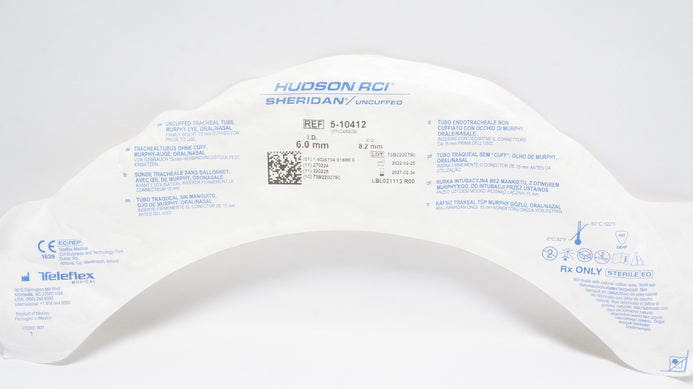 - Teleflex 5-10412 Hudson RCI Sheridan Uncuffed Tracheal Tube 6.0 x 8.2mm