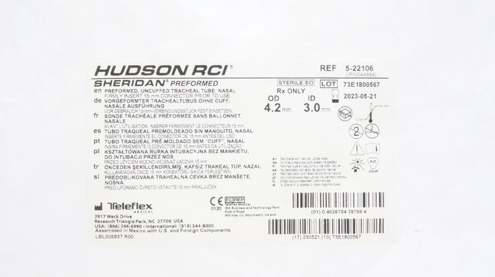 - Teleflex 5-22106 Hudson RCI Sheridan Preformed Tracheal Tube 4.2OD x 3.0mmID (x)