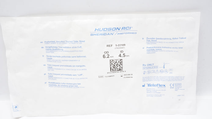 - Teleflex 5-22109 Hudson RCI Sheridan Preformed Tracheal Tube 4.5ID x 6.2mmOD (x)