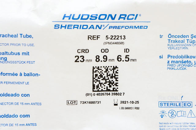 - Teleflex 5-22213 HudsonRCI Sheridan Preformed, Cuffed Tracheal Tube, Oral 8.9mm