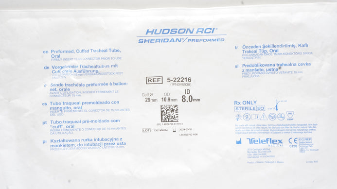 Teleflex 5-22216 Hudson RCI Cuffed Tracheal Tube Oral 29 x 10.9 OD x 8.0mm ID(x)