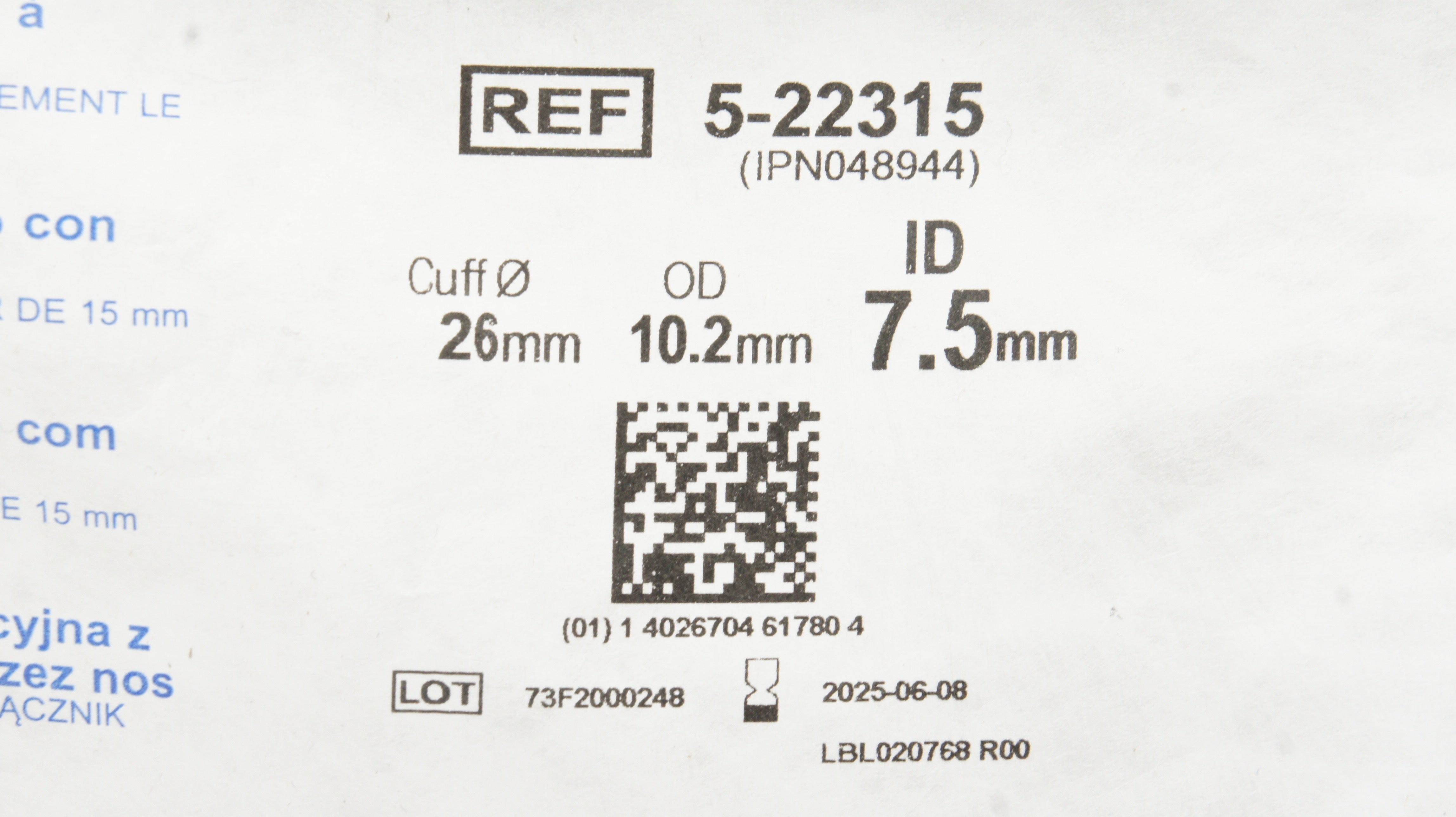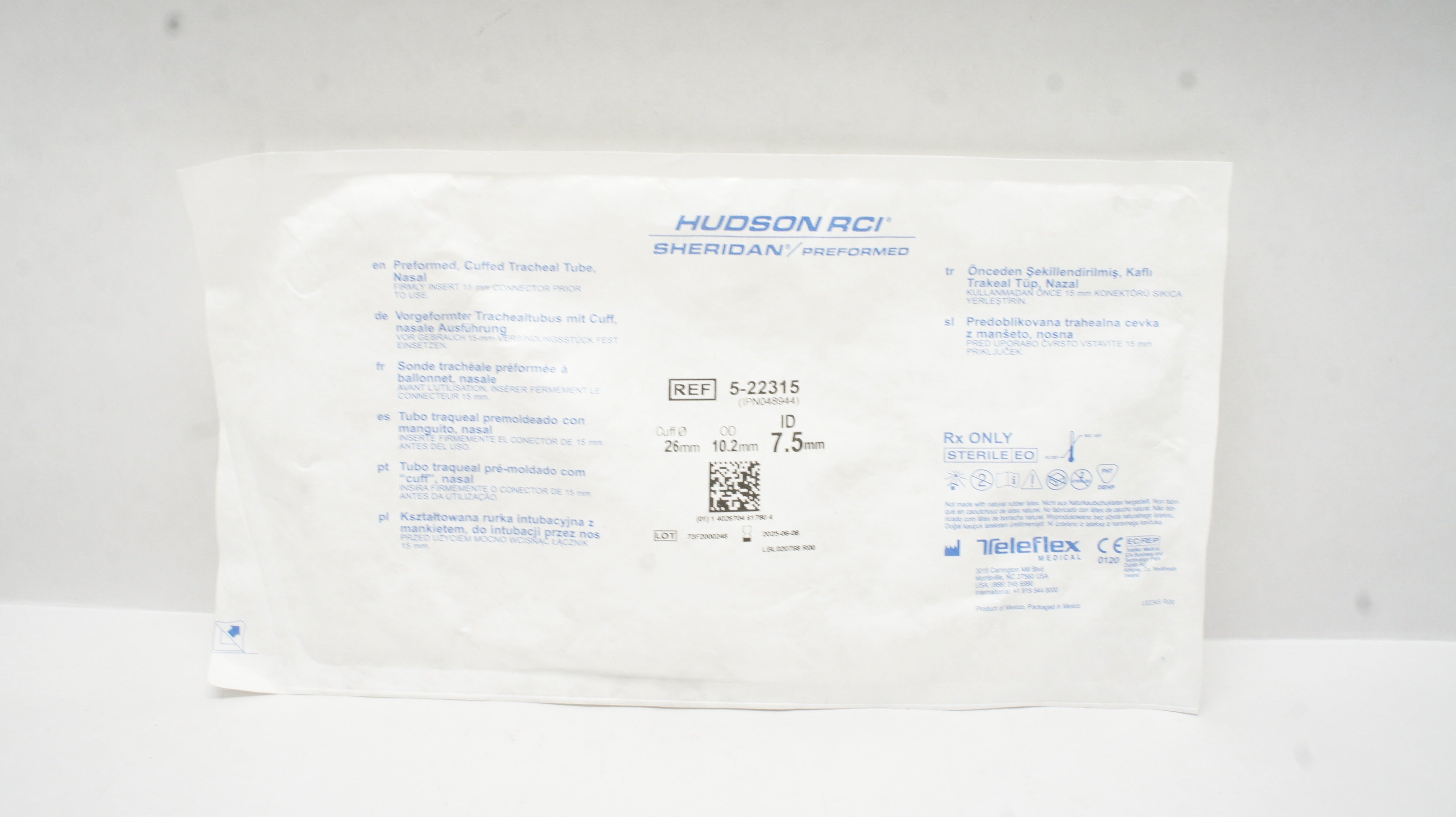 - Teleflex 5-22315 Hudson RCI Preformed Cuffed Tracheal Tube 26 x 7.5ID x 10.2mmOD